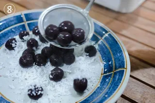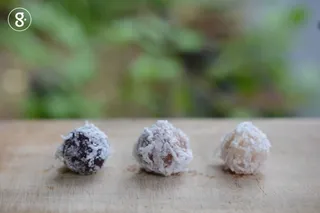จากนั้นเราใช้กระชอนตัก รอสะเด็ดน้ำสักครู่ เทลงในถาดหรือชามมะพร้าวขูด จากนั้นร่อน ให้ก้อนขนมโคกลิ้งไปมา มะพร้าวขูดก็จะไปติดที่ก้อนขนม กลายเป็นขนมโคที่สมบูรณ์ พร้อมเสิร์ฟสำหรับทุกคน