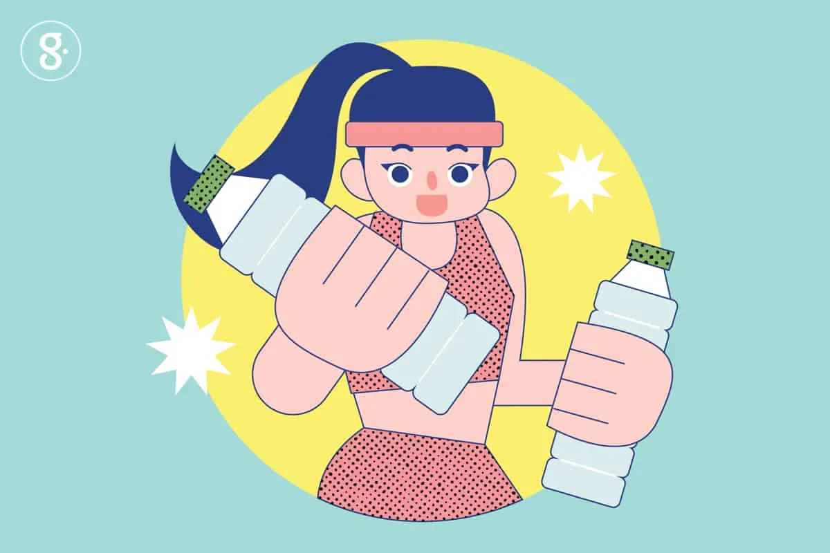 1. มองหาอุปกรณ์เครื่องใช้ในบ้าน ทดแทนดัมเบลล์ บาร์เบลล์ เช่น ขวดน้ำ ถังน้ำ กระเป๋า (ใส่หนังสือ ใส่เสื้อผ้าเพิ่มน้ำหนัก) เป็นต้น