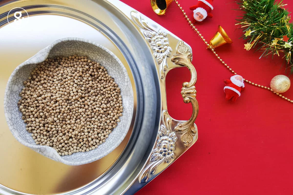 6. พริกไทยขาวสวนทั้งเมล็ด 1 ช้อนโต๊ะ