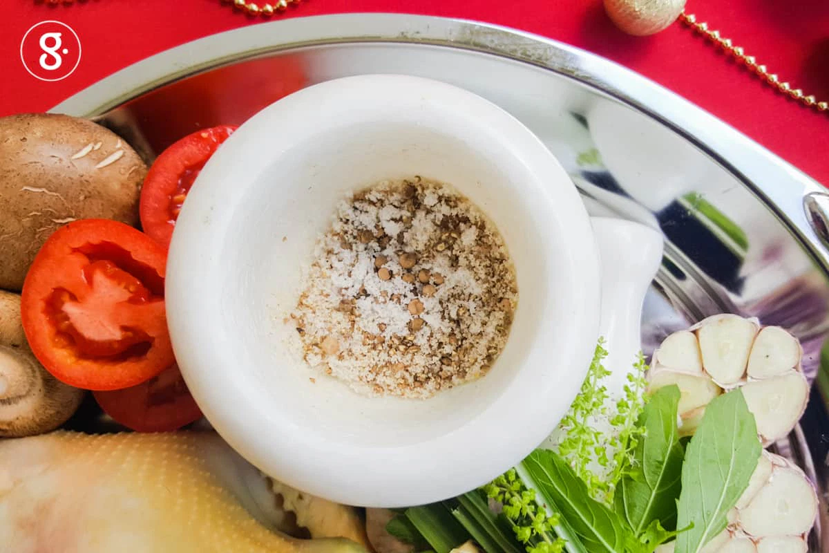 4. พริกไทยขาวสวนคั่วป่นหยาบ 2-3 ช้อนชา