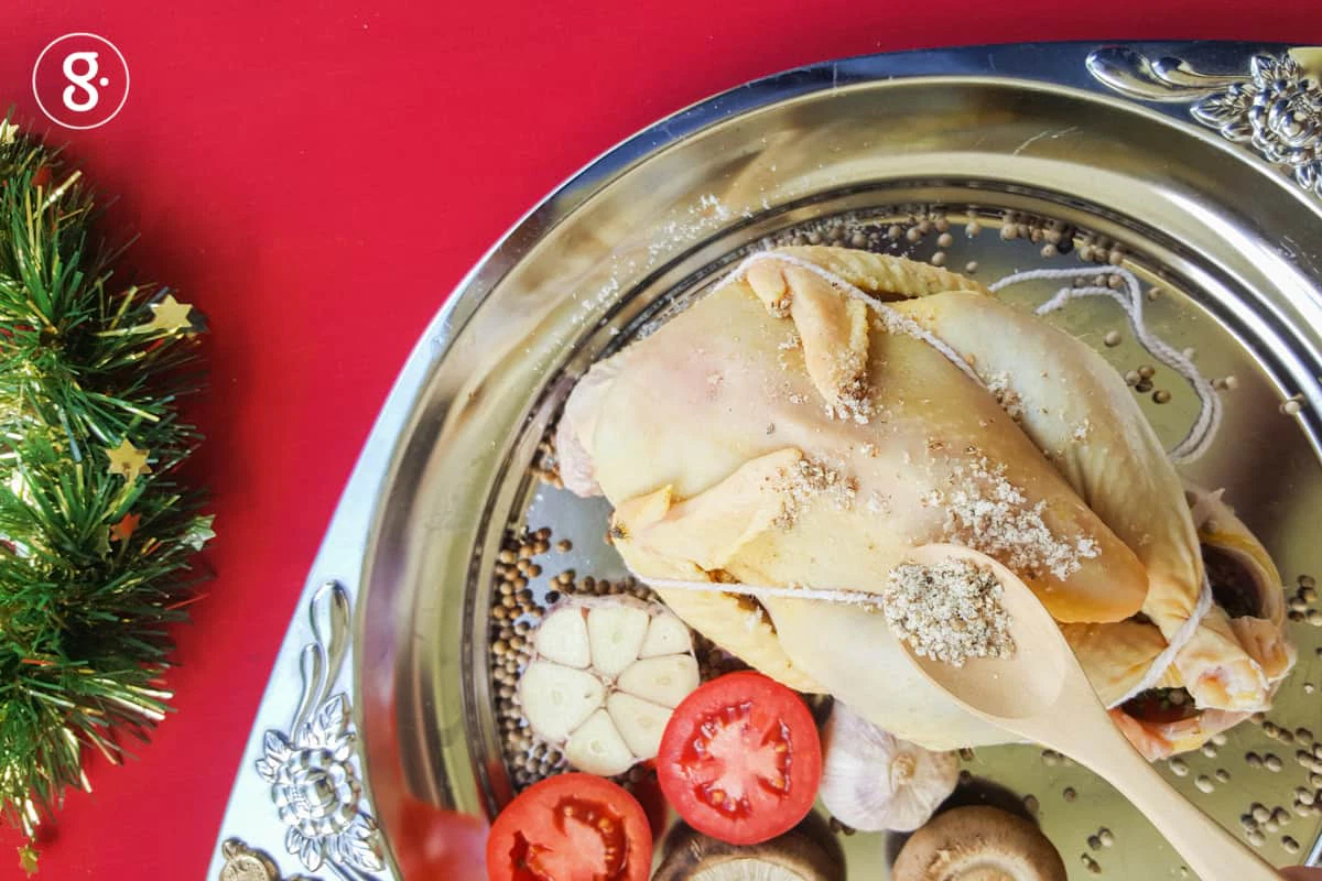 นับจากวันนั้น พริกไทยขาวสวนของคุณกีก็ยังใช้ไม่หมด ฉันจึงเห็นว่า ใกล้เทศกาลปีใหม่แบบนี้ ถ้าได้ลองนำพริกไทยขาวสวนหอมๆ มาหมักทำไก่อบ และทำน้ำเกรวี่จากพริกไทยขาวสวน ไว้กินเฉลิมฉลองวันคริสต์มาสหรือปีใหม่คงดีไม่น้อย เพราะนอกจากจะหอมอร่อยแล้ว ศาสตร์แพทย์แผนไทยที่ฉันเรียนมา ยังระบุสรรพคุณของพริกไทยว่า