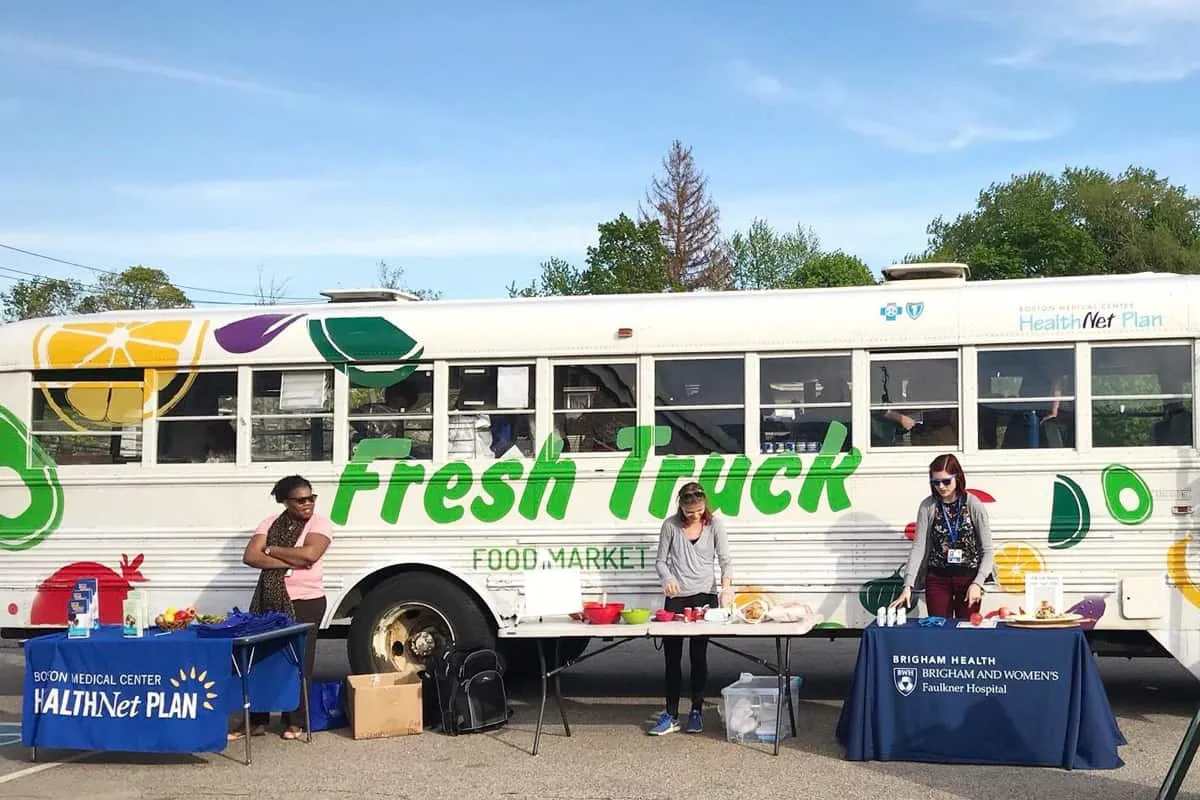 ส่วนที่เมืองบอสตัน ในสหรัฐอเมริกา มีบริษัทสตาร์ตอัพชื่อว่า Fresh Truck มีที่มาจากกลุ่มศิษย์เก่ามหาวิทยาลัยนอร์ทอีสเทิร์น (Northeastern University) ที่ได้ไปทำงานด้านโภชนาการที่ศูนย์สุขภาพ แล้วพบว่าผู้ป่วยและครอบครัวประสบปัญหาการหาอาหารรับประทานตามโภชนาการที่คุณหมอแนะนำ เนื่องจากซูเปอร์มาร์เก็ตที่อยู่ใกล้บ้านที่สุดได้ปิดปรับปรุงเป็นเวลา 1 ปี ทีมผู้ก่อตั้งจึงได้ปิ๊งไอเดีย นำรถรับส่งนักเรียนคันใหญ่มารีโนเวตเป็นรถขายผัก ติดตั้งตู้เย็นสำหรับใส่วัตุดิบที่ต้องแช่เย็นไว้อย่างเนื้อสัตว์ นม เนย ต่างๆ มีเครื่องชั่งน้ำหนัก และมีอาสาสมัครของโครงการผลัดเปลี่ยนกันมาเป็นแคชเชียร์ ช่วยจัดจำนวนวัตถุดิบใส่รถให้ และนำวัตถุดิบอาหารที่หลากหลายมาให้คนเมืองกลุ่มเปราะบาง เพื่อที่จะช่วยให้ชุมชนย่านต่างๆ ในเมืองที่ไปซูเปอร์มาร์เก็ตได้ลำบากมีช่องทางการเข้าถึงอาหารที่ดีมีคุณภาพ