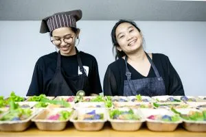 ส่วนเรื่องเมนูนั้น มิ้มช่วยเสริมว่า “เราจะมีเซ็ตเมนูหลัก ซึ่งก็แล้วแต่งาน เช่น ลูกค้าจัดบุฟเฟ่ต์ เราก็จะมีรายการอาหารบุฟเฟ่ต์ให้เขาเลือก แต่ถ้าลูกค้าห่อใบตอง เราก็จะมีอีกเซ็ตเมนูหนึ่ง เหมือนเปิดแคตาล็อก แล้วเลือกเซ็ตว่าจะเลือกอาหารอะไรได้บ้าง เลือกขนมได้กี่อย่าง เพื่อไม่ให้เกินการจัดการที่จะยากเกินไป จากนั้นเราก็จะมาดูว่าอาหารที่ลูกค้าเลือกในฤดูกาลนั้นเราใช้อะไรได้ เช่น ถ้าเลือกแกงเขียวหวาน แต่ฤดูนี้เป็นฤดูฝน มีหน่อไม้เยอะ เราก็จะใส่หน่อไม้ โดยใช้หน่อไม้จากเครือข่าย ช่วงนี้มีดอกไม้เยอะ เราก็มีเมนูที่ใช้ดอกไม้”