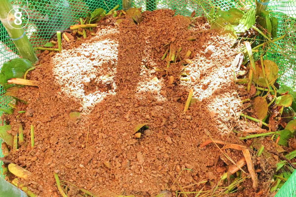 และสิ่งที่จำเป็นคือปุ๋ยคอก (ขี้วัว) ถือว่าเป็นแหล่งจุลินทรีย์ที่มาช่วยย่อยสลาย ให้ใส่เศษอาหารและโรยปุ๋ยคอกทับด้านบน ทำสลับชั้นจนเกือบเต็มแล้วรดน้ำให้ชุ่ม ในช่วงแรก กองปุ๋ยจะเกิดความร้อน ให้เราหาไม้คนคลุกเคล้ากองปุ๋ย หมักต่อไปเรื่อยๆใช้เวลา 1-2 เดือน เศษอาหารต่างๆ จะย่อยสลายกลายเป็ยปุ๋ยหมัก วิธีสังเกตคือปุ๋ยหมักจะไม่มีความร้อนเหลืออยู่แล้ว เราก็สามารถนำไปปลูกผักหรือใส่ต้นไม้ได้ ช่วยเพิ่มสารอาหารและจุลินทรีย์ที่ดีให้แก่ดินปลูกผักของเรา