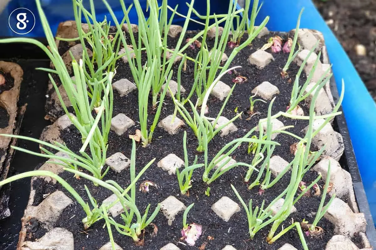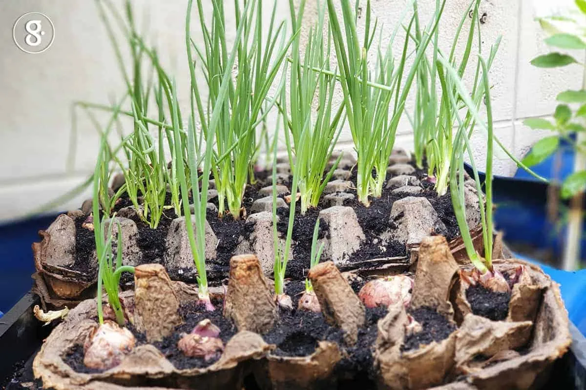 ใช้หัวหอมแยกเป็นกลีบมาปลูก เลือกหัวที่สมบูรณ์ไม่เป็นโรค ไม่มีรา แล้วตัดรากออกบางส่วน ตัดปลายยอดให้แตกหน่อ ก่อนปักชำ ให้นำผ้าเปียกห่อไว้ 1 วัน หรือจนกว่าหัวหอมแดงจะแตกหน่อออกมา จากนั้นนำหัวหอมแดงที่แตกหน่อแล้วไปปักดิน รดน้ำวันละ 1-2 ครั้ง ใบต้นหอมจะแทงออกมา เมื่อยาวพอที่จะนำไปรับประทาน สามารถตัดเฉพาะใบไปใช้ได้