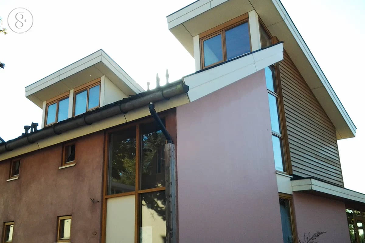 - วัสดุท้องถิ่น วัสดุที่สามารถหาได้ในท้องถิ่น เพื่อช่วยลดพลังงานจากการขนส่ง เช่น ไม้สน เพื่อนำมาเป็นโครงสร้างของบ้าน และขอบประตูหน้าต่าง