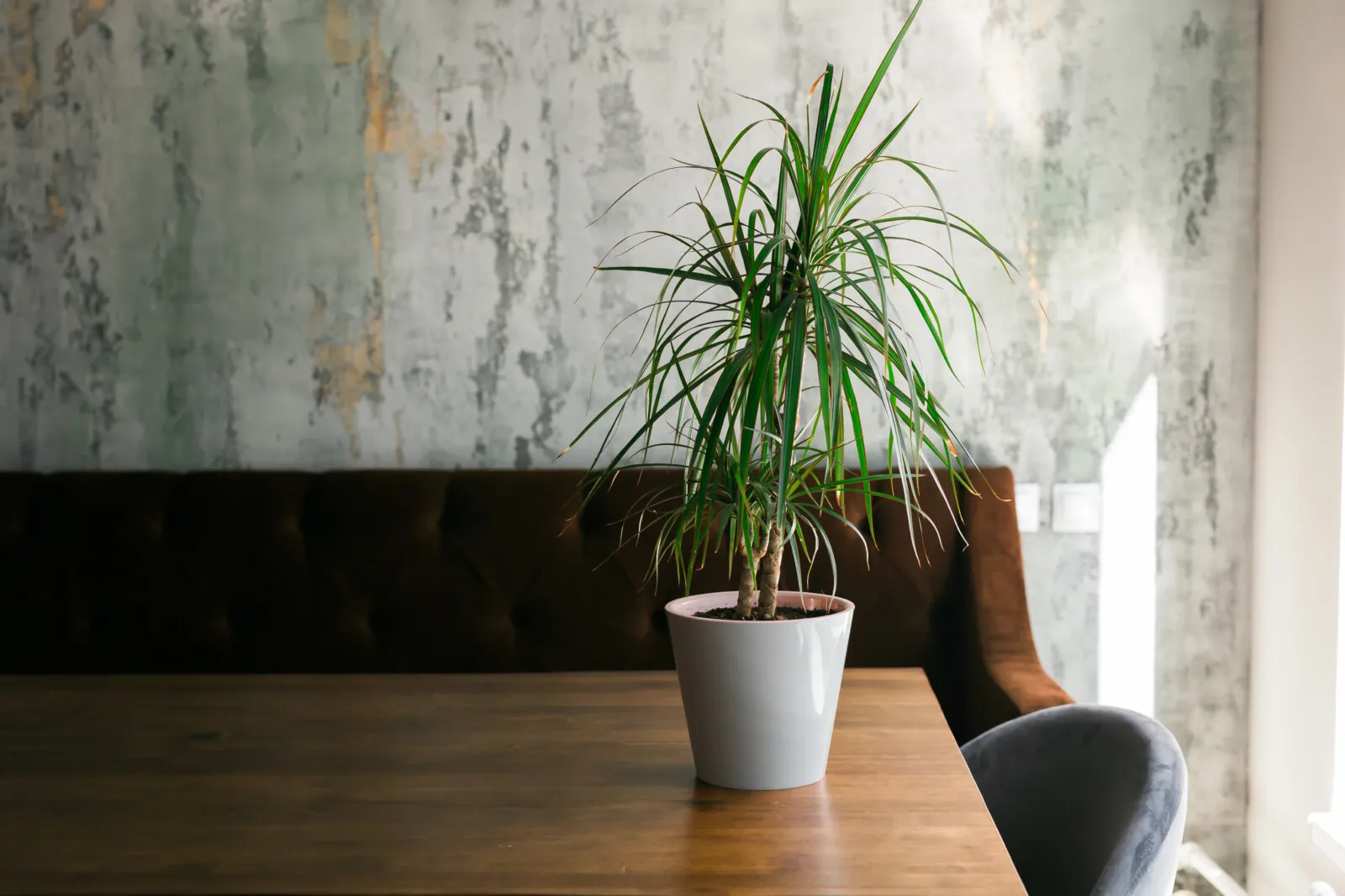 Room or restaurant decoration with plant in pot copy space
