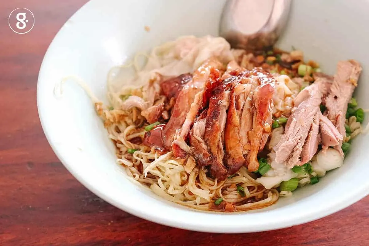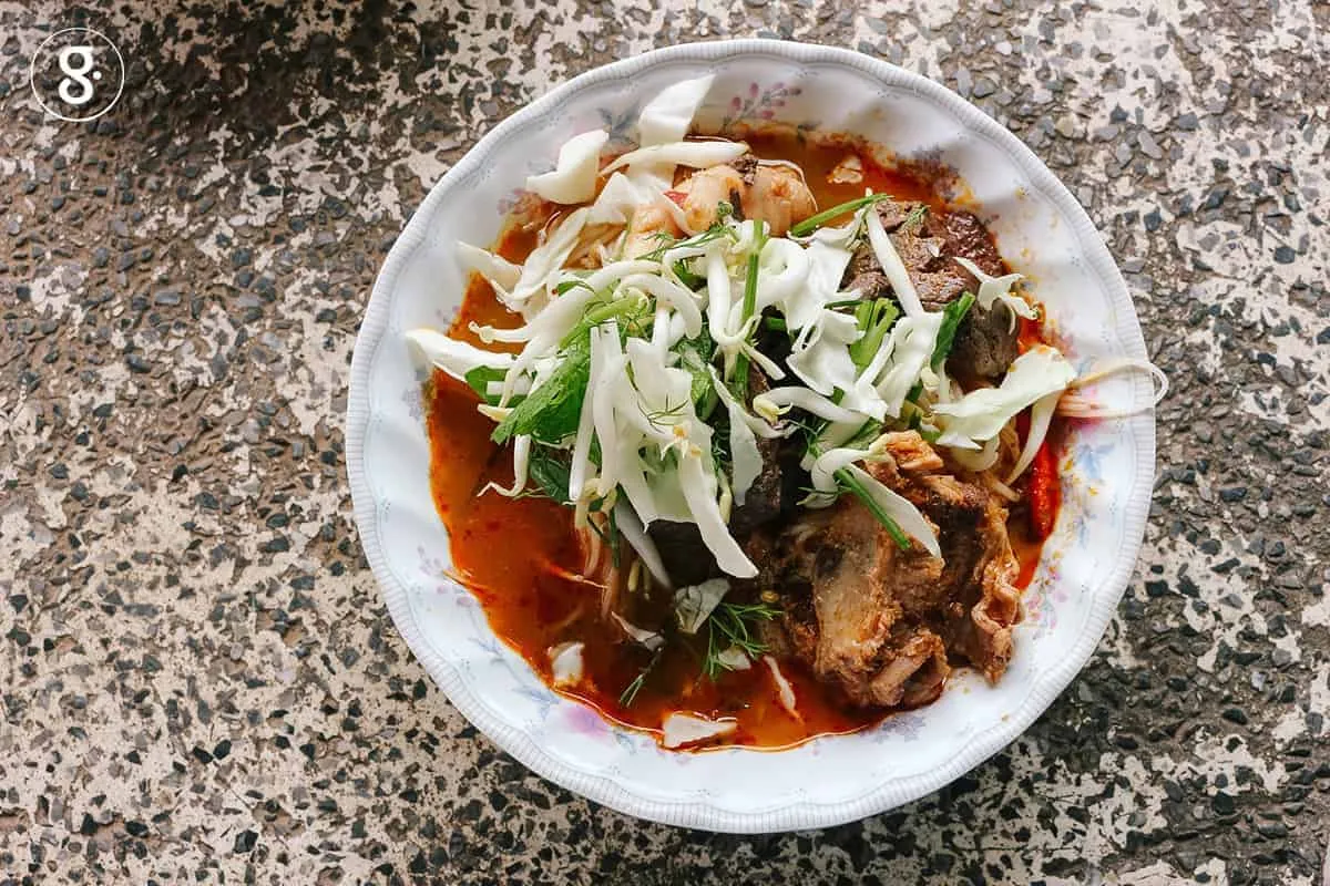 เราไปชมการผลิตเส้นขนมจีนที่ บ้านขนมจีนแม่เหี่ยน ที่ปกติเขาเริ่มทำงานกันตั้งแต่เที่ยงคืนเรื่อยไปจนถึงเจ็ดโมงเช้าของอีกวัน เพื่อส่งขนมจีนสดใหม่ไปขายทั่วตลาด ธนวรรณ สีดอนซ้าย ทายาทรุ่นสองเล่าให้ฟังว่า ที่บ้านทำขนมจีนมานานหลายสิบปีแล้ว ในอดีตขั้นตอนทุกอย่างทำด้วยมือทั้งหมด ตั้งแต่การหม่าข้าว (แช่ข้าวด้วยน้ำ) ไว้ 3-4 วัน โดยเปลี่ยนน้ำแช่ข้าวทุกวัน โม่ข้าวเป็นแป้ง รอให้ตกตะกอนเป็นแป้งอีก 3-4 วัน นำแป้งมาต้ม 20-50 นาที แล้วแต่อุณหภูมิของฤดูกาลแต่ละช่วง ก่อนบีบแป้งให้กลายเป็นเส้น ซึ่งทั้งหมดนี้เป็นขั้นตอนที่ครอบครัวทำมาทุกวันแบบแทบไม่มีวันหยุดเลย เพิ่งจะมาเปลี่ยนเป็นเครื่องผลิตเส้นอัตโนมัติได้ไม่กี่เดือนที่ผ่านมานี้เอง