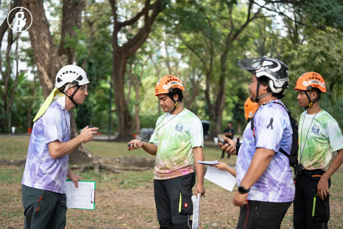 แล้วการแข่งขันปีนต้นไม้รูปแบบนี้ผู้เข้าแข่งขันต้องแสดงฝีมือและฝึกทักษะอะไรกันบ้างมาลองดูกัน “การแข่งขันจะมีสนามย่อยหลากหลายสนาม โดยทุกอย่างถอดแบบมาจากการทำงานจริงของรุกขกรเลยค่ะ สนามปีนต้นไม้มีตั้งแต่ฐานการปีนแบบตัวเปล่า ทดสอบการปีนเร็ว ตรงนี้จะเป็นการทดสอบพลังกายและใจล้วน ๆ อีกฐานก็เป็นการปีนต้นไม้แบบใช้เครื่องมือและอุปกรณ์ช่วยปีน ตรงนี้จะเป็นการทดสอบสมรรถนะแล้วก็ทักษะไปในตัว นอกจากนี้ก็ยังมีฐานการปีนเพื่อกู้ภัย ตรงนี้จะมีหุ่นจำลองแขวนอยู่บนต้นไม้เพื่อให้เราไปช่วยลงมา เป็นการทดสอบทักษะด้านกู้ภัยโดยเฉพาะ แล้วสุดท้ายก็จะเป็นฐาน Work Climb จำลองสถานการณ์การทำงานจริงทุกขั้นตอนและเน้นกระบวนการปฏิบัติงานตามหลักมาตรฐานสากล โดยทุกคนจะเข้าแข่งขันทุกฐานแล้วจากนั้นเอาคะแนนมารวมกัน ใครได้คะแนนสูงสุดก็จะเป็นผู้ชนะไป” สนามแข่งขันที่ได้มาตรฐานสากลนั้นจะกำหนดรายละเอียดการแข่งขันตลอดจนกติกาภายใต้การดูแลขององค์กร International Society of Arboriculture (ISA) ซึ่งถือเป็นหน่วยงานกลางสำหรับวิชาชีพรุกขกรทั่วโลกตลอดจนเป็นพาร์ทเนอร์สำคัญในการแข่งขันปีนต้นไม้ในแต่ละครั้งด้วยนั่นเอง