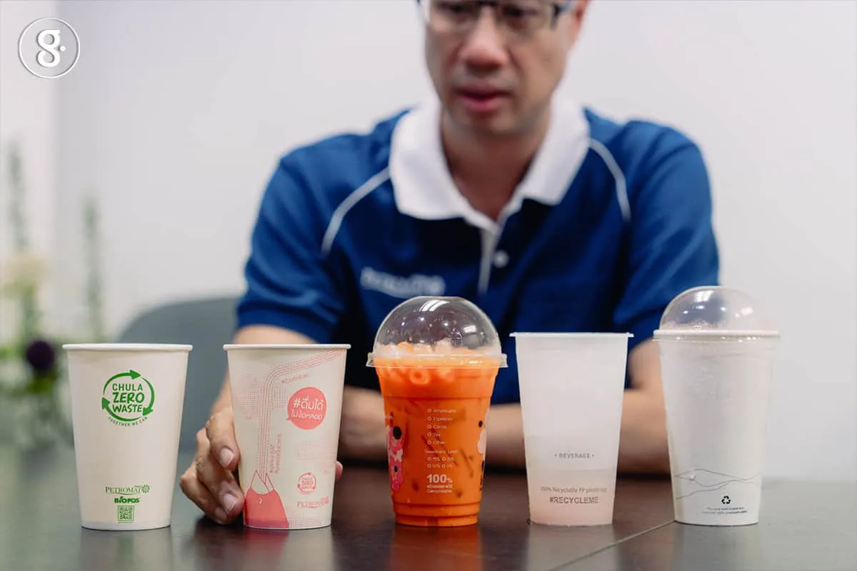 ปัญหาคือ ทั้งหมดแยกด้วยสายตาแทบไม่ออก หรือให้ลองดีดแก้ว PLA เสียงจะดังและก้องกว่า จะแยกได้ก็ต่อเมื่อมาเทียบกัน ซึ่งเป็นความยากต่อผู้บริโภคที่ไม่สามารถแยกได้ด้วยตาเปล่า และนี่เป็นสาเหตุว่าในประเทศไทย ไม่มีใครรับซื้อแก้วกาแฟเพื่อไปรีไซเคิลเลย เพราะว่ามีหลายประเภทและไม่สามารถแยกได้ วัสดุที่มีโอกาสเข้าสู่การรีไซเคิลมากที่สุดคือ PP เพราะมีโรงงานแล้ว มีที่รับซื้อแล้ว แต่ปัญหาคือยังไม่มีระบบแยกที่เหมาะสม ทำให้ร้านรับซื้อไม่มั่นใจที่จะรับซื้อเพราะกลัวว่าจะมีอย่างอื่นมาผสม