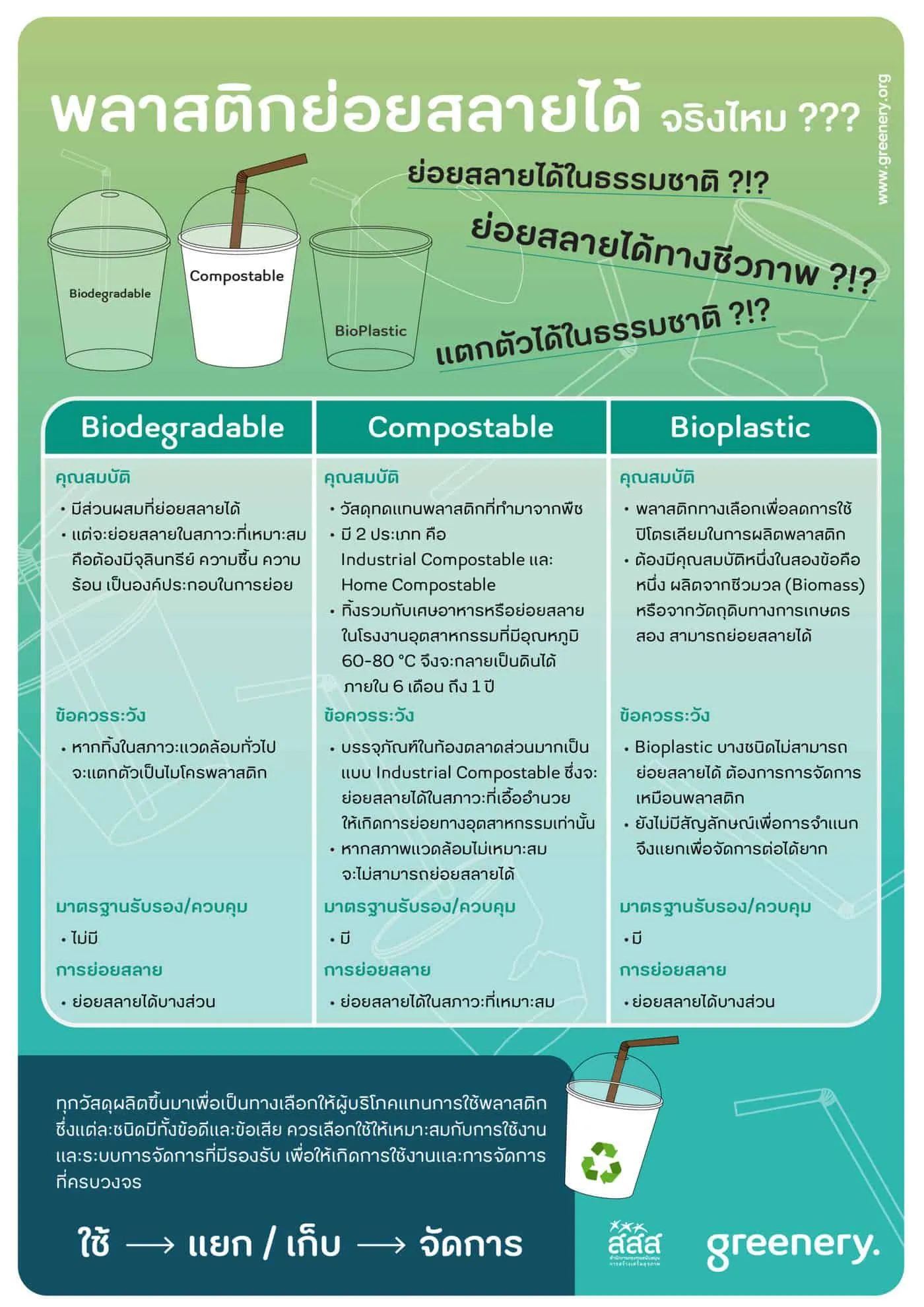 ถ้าไม่มีปลายทางที่จัดการได้อย่างถูกต้อง ผมไม่แนะนำให้ใช้พลาสติกที่ย่อยสลายได้