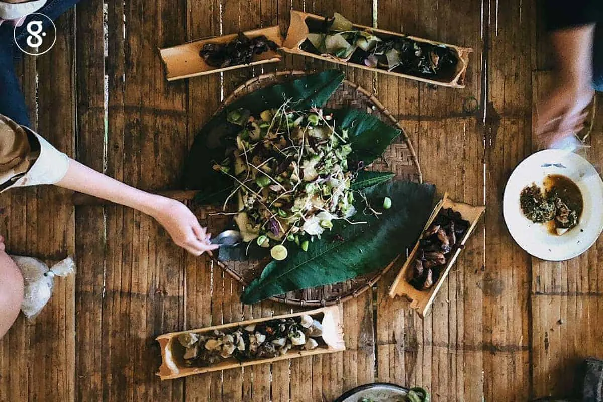 กิจกรรมในวันที่ 2 เป็นเรื่องของไร่หมุนเวียน เราได้พาผู้เข้าร่วมไปในป่าอีกฟากนึงที่ชุมชนจัดสรรไว้เป็นที่ทำกิน คือทำการเกษตรเพื่อปากท้องเท่านั้น ไม่ได้ไว้เพื่อขาย เราเดินเข้าป่าใช้เวลาประมาณชั่วโมงครึ่งก็ถึงที่ไร่ สิ่งที่เห็นคือแปลงนาในที่ลาดชันประมาณ 4-5 ไร่ในป่า ผู้จัดให้โจทย์เราว่าต้องเข้ามาทำอาหารเที่ยงในไร่ โดยให้พกแค่ข้าวกับช้อนไป และที่เหลือให้ไปเก็บผลผลิตในไร่ แต่สิ่งที่เห็นคือเราไม่เห็นจะมีอะไรให้เก็บเลย มีแต่นาเปล่าๆ ที่ผ่านการเกี่ยวข้าวไปแล้ว เอาล่ะสิ แล้ววันนี้จะได้กินอะไร โชคดีที่ผมกะเอาไว้เลยหมักหมูให้ทุกคนพกไปเผื่อไม่มีไรกิน แต่ผลปรากฏว่า พอเราเดินเข้าไปในไร่ แทบจะทุกๆ ก้าวเราจะเจอพืชพันธุ์ที่หลากหลาย ทั้งพริก มะเขือ มะเขือเทศ ถั่วพู ถั่วฝักยาว หอมชู ฮอวอ งาขี้ม่อน งาขาว เผือก มัน ฟักเขียว ข่า ขมิ้น ฯลฯ ซึ่งสามารถทำอาหารได้มากกว่า 3 เมนู ถ้าเราดูเผินๆ แทบจะดูไม่ออกว่ามีอะไร นี่มันเป็นความเจ๋งของไร่ชัดๆ!