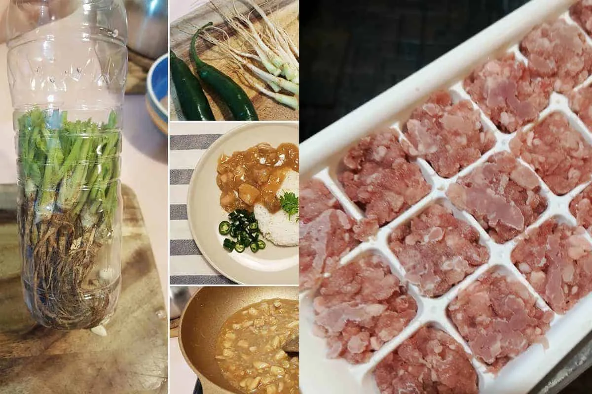 Kerati DC Narkhanark มาพร้อมไอเดียถนอมอาหารด้วยการเก็บหมูสับในก้อนหลุมทำน้ำแข็งที่นำมาทำอาหารได้ง่ายๆ ไม่ต้องใส่ถุงพลาสติก และคุณ Suchada Tansirimas กับการนำขวดพลาสติกมา #Reuse ถนอมรากผักชีให้หอมฟุ้งพร้อมเก็บในตู้เย็นได้นานๆ