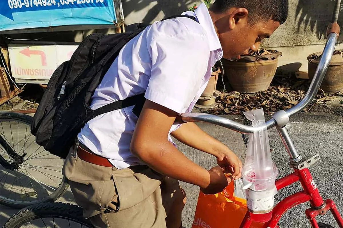 การแบ่งปันเป็นภาพที่ชวนยิ้มตาม เหมือนที่คุณ Nuu BlueFern มาแชร์เรื่องเล่าน่ารัก เมื่อเธอเห็นหนุ่มน้อยขี่จักรยานแบกกล้วยเครือใหญ่ใส่ถุงพลาสติกด้วยความยากลำบาก เธอจึงปันถุงผ้าที่มีติดรถให้น้องเพื่อจะได้ถือได้สะดวกขึ้นและปันแนวคิดอุดมกรีนไปด้วยในคราวเดียวกัน