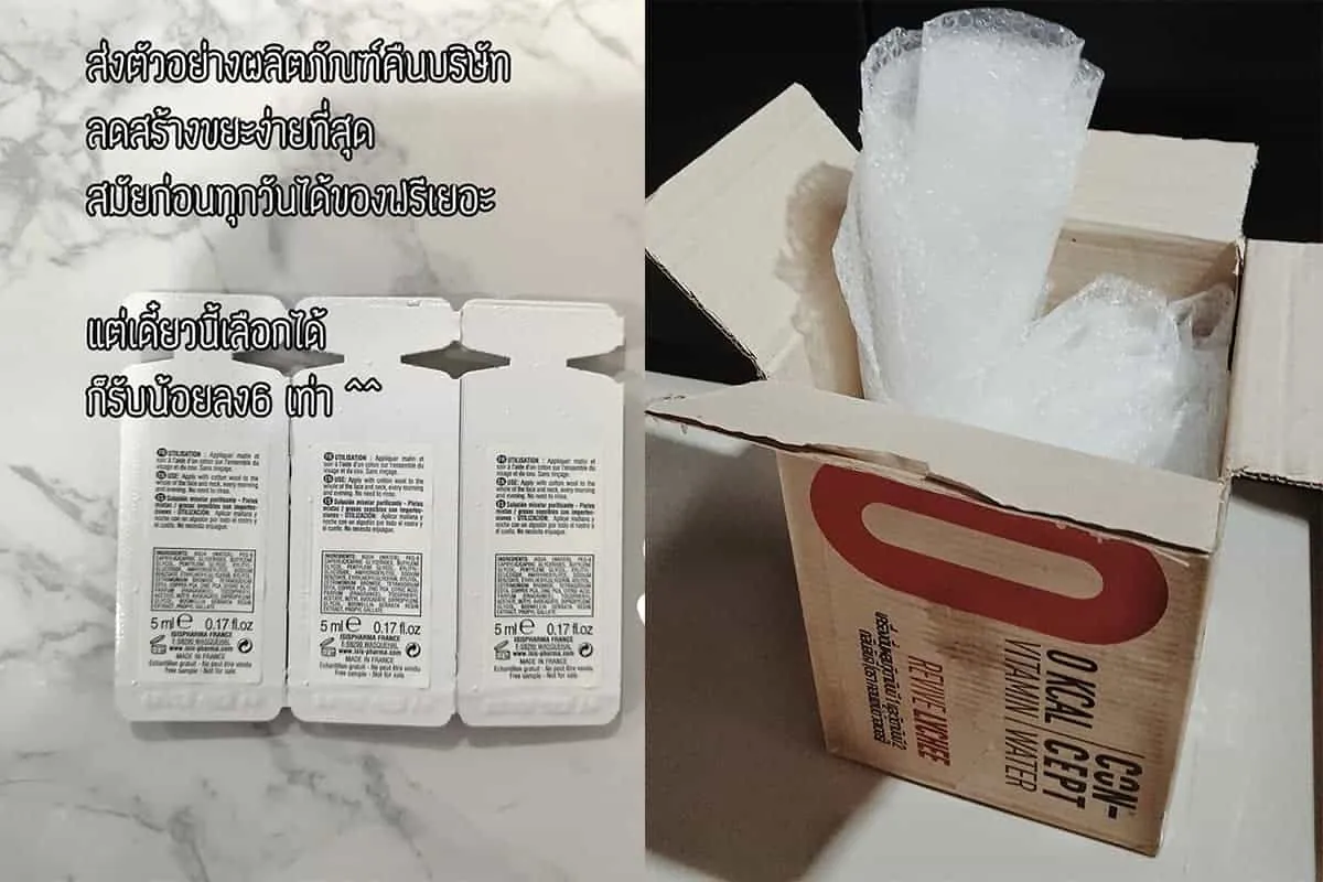 นอกจากการพยายามใช้ให้เกิดประโยชน์สูงสุด การ #Return หรือส่งคืนเพื่อนำกลับไปใช้ซ้ำก็เป็นอีกวิธีลดขยะที่น่าสนใจ แต่ออกจะยุ่งยากอยู่สักนิด แต่คุณ Prapasiri Pi ก็เลือกส่งคืนบับเบิลกันกระแทกกลับไปให้ร้านขายขนมออนไลน์ต้นทางให้นำกลับไปใช้ซ้ำ เพื่อให้มันทำหน้าที่ได้อย่างคุ้มค่า และคุณ Pattraniya Monglol ที่เลือกส่งผลิตภัณฑ์ Sample คืนบริษัทต้นทางเพื่อลดการสร้างขยะ