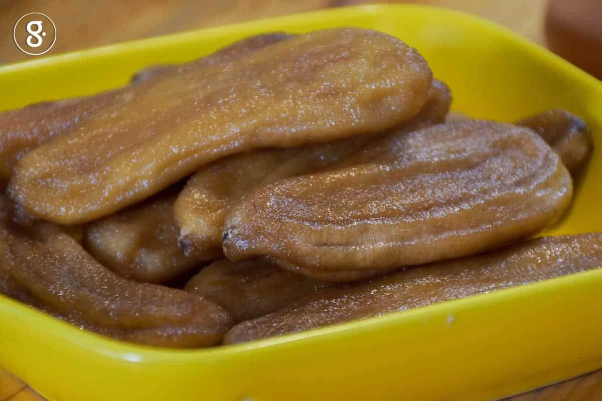 4. หากเรามีกล้วยตากแบบที่อบน้ำผึ้งมาแล้ว เราอาจจะไม่จำเป็นต้องเพิ่มน้ำผึ้งนะคะ ทั้งนี้แล้วแต่ความชอบเลยค่ะ หากชอบหวานก็เพิ่มได้ อย่างน้อยน้ำผึ้งก็เป็นความหวานตามธรรมชาติ
