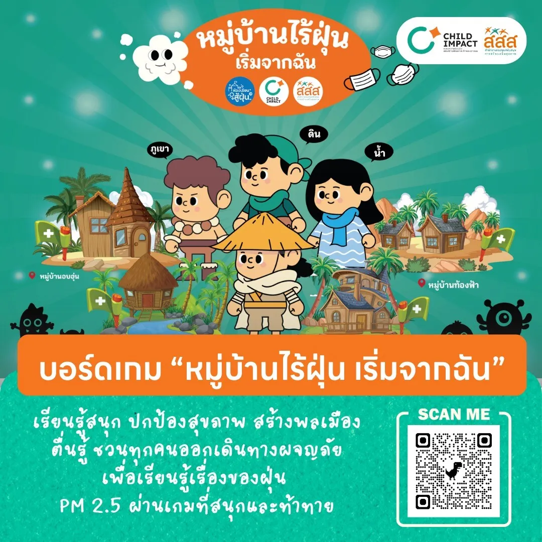 บอร์ดเกม “หมู่บ้านไร้ฝุ่น เริ่มจากฉัน” นี้สร้างสรรค์ขึ้นโดย Child Impact ดิจิทัลแพลตฟอร์มเชื่อมโยงความร่วมมือจากหลากหลายภาคส่วนร่วมกันพัฒนาศักยภาพเด็กและเยาวชนไทยให้เติบโตอย่างมีคุณภาพ และ สำนักงานกองทุนสนับสนุนการสร้างเสริมสุขภาพ (สสส.) เพื่อเป้าหมายในการให้เด็กได้เรียนรู้เรื่องมลพิษทางอากาศจนสามารถมีความรู้เบื้องต้น ตลอดจนปรับเปลี่ยนพฤติกรรมและสร้างเกราะป้องกันตัวเองได้