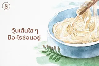 เด็ก (ชอบกิน) เส้นทั้งหลาย มักได้ข้อมูลบอกต่อ ๆ กันมาว่า ในประดาสารพัดเส้นจากแป้งบนโลกนี้ วุ้นเส้น นั้นดีต่อสุขภาพ แคลอรี่น้อยกินแล้วไม่อ้วน ยิ่งมองดูความใสสวยเส้นเล็กของวุ้นเส้น ก็ยิ่งชวนให้เชื่อไปตามนั้นแบบไม่มีอะไรติดใจ วันนี้เลยอยากชวนคุณไปรู้จักกับวุ้นเส้นให้ลึกลงไปอีกสักหน่อย กับชุดข้อมูลอื่นนอกเหนือจากที่เคยรับรู้มา หลังจากนั้นค่อยตัดสินกันว่า วุ้นเส้น ในใจนั้นเป็นเช่นไร