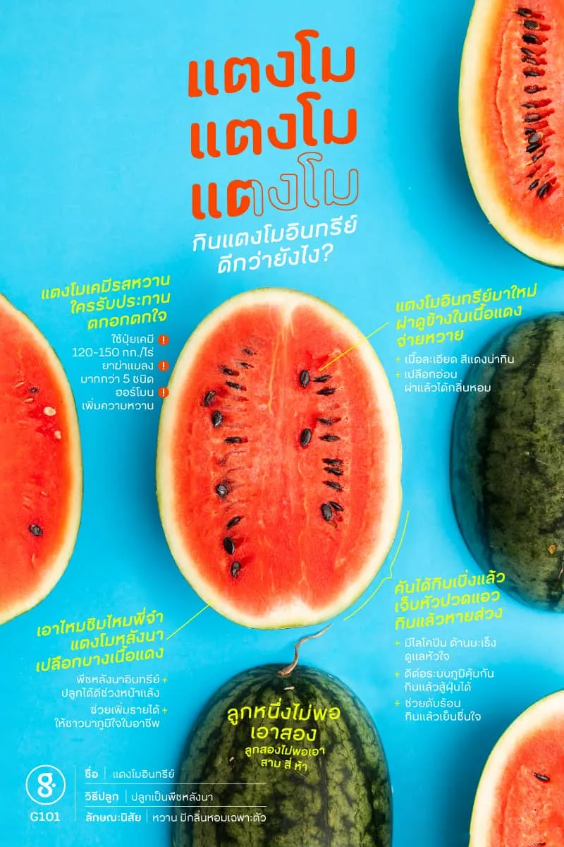 แต่เรื่องที่ใหญ่ไปกว่าการกินแตงโมดับร้อน คือเบื้องหลังที่มีทั้งดีและไม่ดีของแตงโมเนื้อแดงๆ หวานๆ ฉ่ำๆ G101 ในตอนนี้ อยากพาไปเรียนรู้และเข้าใจว่าการเลือกกินแตงโมของเราแต่ละครั้ง มันส่งผลต่อสุขภาพ เศรษฐกิจ ไปจนถึงความภูมิใจของคนปลูกได้ยังไง