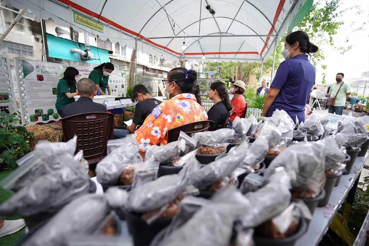 นอกจากเรื่องเล่าบนเวที งานนี้ยังชวนคนเมืองมาเรียนรู้การปลูกผักกินเอง ด้วยเวิร์กช็อป “ปรุงรสปุ๋ย ลุยปลูกสวน” โดยทีมงานจากสำนักพัฒนาสังคม กรุงเทพมหานคร ที่เปิดห้องเรียนเตรียมดินสำหรับปลูกพืชสวนครัว และสาธิตการทำปุ๋ยชีวภาพจากเศษอาหารภายในบ้านฉบับง่าย ๆ เพื่อให้มือใหม่ได้ลงมือปลูกอย่างมั่นใจขึ้น พร้อมทั้งให้กล้าพันธุ์ผักสวนครัวและปุ๋ยกลับไปทดลองปลูกที่บ้านอย่างครบเซต