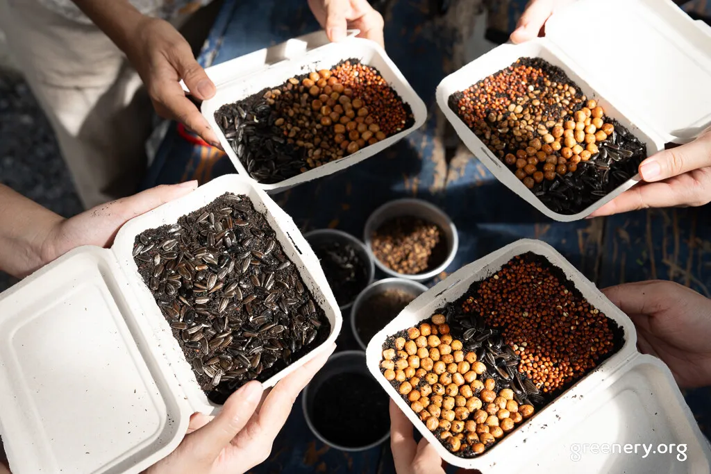 สำหรับเมล็ดที่ฟาร์มลุงรีย์นำมาให้เพื่อน ๆ ผู้ร่วมกรีนได้ทดลองปลูกกัน มี 4 ชนิด ได้แก่ ต้นอ่อนทานตะวัน, ไควาเระหรือต้นอ่อนหัวไชเท้า เป็นพืชที่มีรสชาติซ่า ๆ, โต้วเหมี่ยวหรือต้นอ่อนถั่วลันเตา สามารถเก็บเกี่ยวได้ 2-3 ครั้ง และผักบุ้งจีน ซึ่งระยะเวลาเก็บเกี่ยวที่จะได้ผักบุ้งที่ดี กรอบ ไม่เหนียว คือภายใน 28 วัน โดยมีความยาวลำต้นประมาณ 30 ซม. แต่สำหรับไมโครกรีน สามารถเก็บเกี่ยวต้นอ่อนผักบุ้งตอน 14 วัน ก็สามารถกินได้เช่นกัน