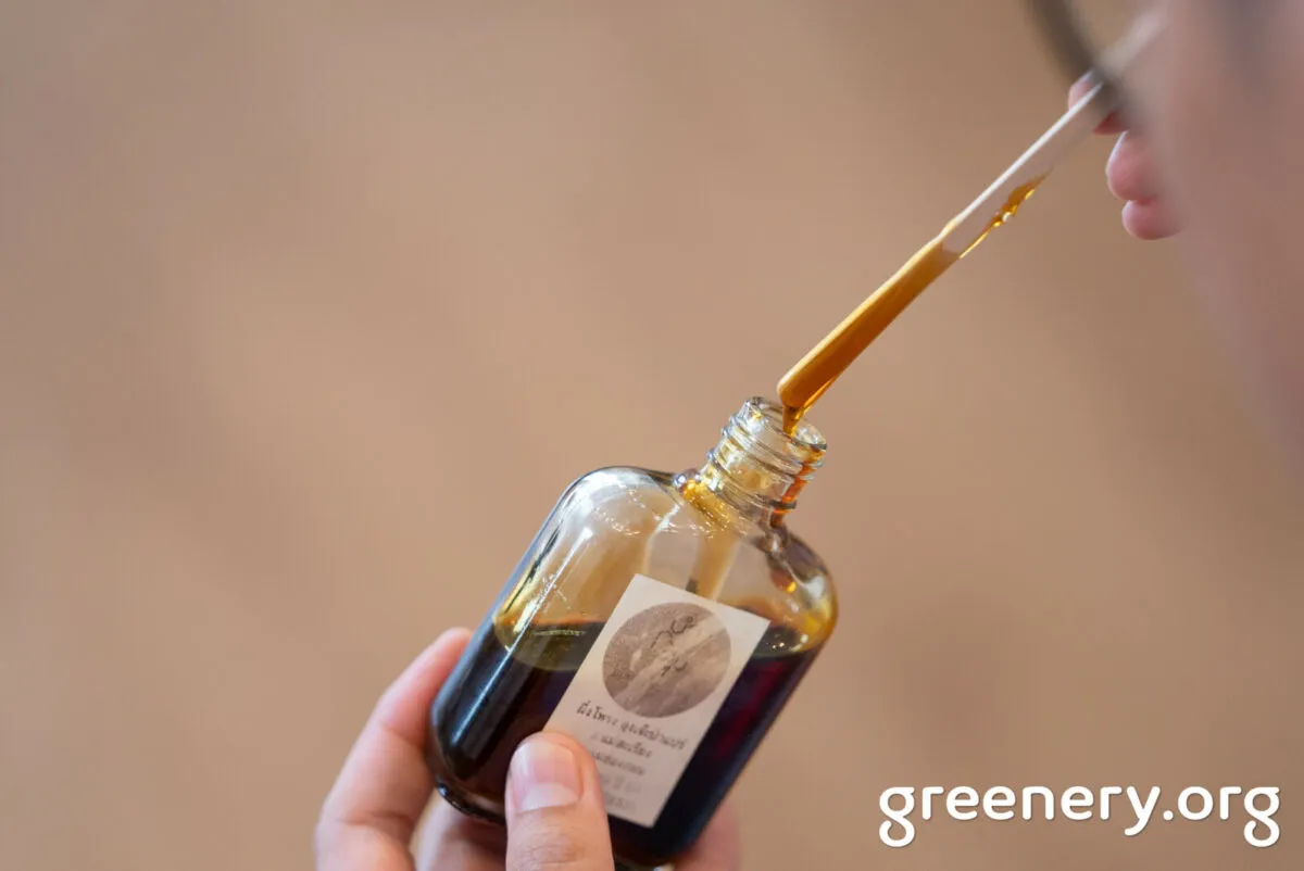 ขณะเดียวกัน น้ำผึ้งบางล็อตของแบรนด์บำรุงสุข ถ้ายังไม่ได้มาตรฐานที่ตั้งไว้ เขาจะนำมาแปรรูปเป็นน้ำผึ้งหมักผลไม้ ‘ไทยฮันนี่โซดา’ ที่วันนี้เขาได้ชงให้ผู้ร่วมวิถีกรีนดี กินดี ได้ชิมส่งท้ายกิจกรรมด้วย ซึ่งเป็นเครื่องดื่มที่เบนซ์เลือกจับคู่น้ำผึ้งกับผลไม้ไทยทั้งหมด เช่น มะแปม ขิง พุทราไทย และกล้วย เรียกว่าเป็นแก้วที่ได้ทั้งรสชาติและกลิ่นที่แปลกใหม่ ทั้งสะท้อนมิติของความยั่งยืนได้เป็นอย่างดี