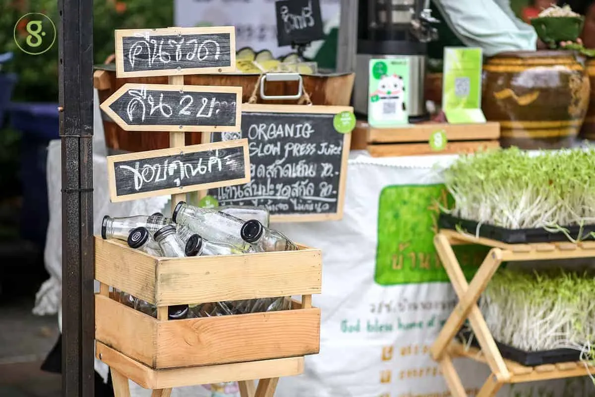 ของในตลาดยังไม่จบแค่นั้น เพราะยังมีหมวดสินค้าอุปโภคที่เป็นมิตรต่อธรรมชาติและสิ่งแวดล้อม ไม่ว่าจะเป็นสินค้าผลิตภัณฑ์ทำความสะอาดจาก ‘ปันกันกรีน’ น้ำมันนวดและยาหม่องสมุนไพรจาก ‘ชีวาเฮิร์บ’ หนังสือจากสำนักพิมพ์กรีนๆ อย่าง ‘VisionBook’ เสื้อผ้าเครื่องประดับจากฝ้ายและไหมออร์แกนิกจาก ‘Folkcharm’ และรองเท้าจากขยะของแบรนด์ ‘ทะเลจร’ และแบรนด์สินค้ากรีนอื่นๆ ที่น่าใช้และน่ารักกับโลก ไม่ว่าจะสนับสนุนสินค้าอะไรก็ดีต่อตัวเองและเป็นส่วนหนึ่งในการช่วยโลกได้ทั้งนั้น