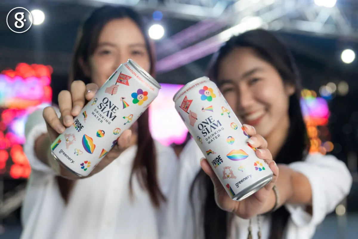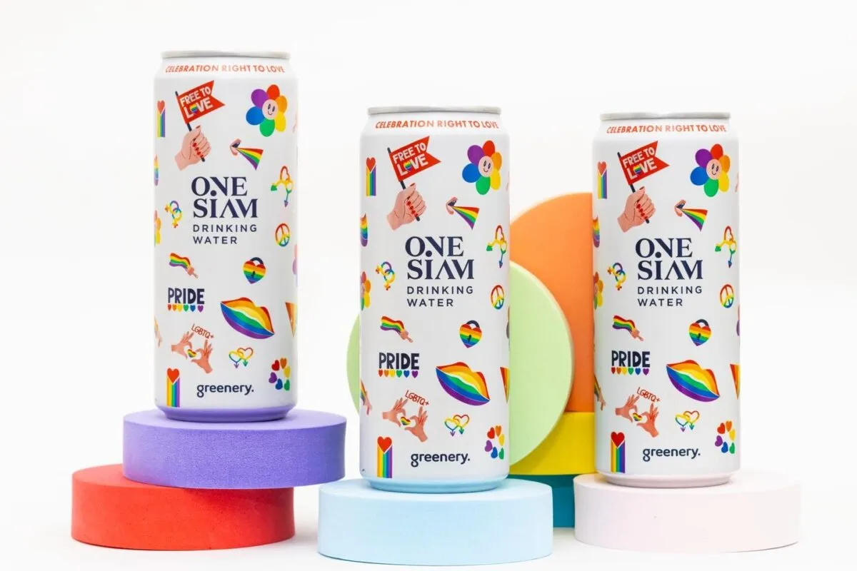 ธงสีรุ้งอันเป็นสัญลักษณ์ของ Pride Month พร้อมข้อความ “Celebration Right to Love” ปรากฏขึ้นอีกครั้งบนกระป๋องน้ำดื่ม ONESIAM *Pride Edition ดีไซน์ล่าสุด เพื่อเฉลิมฉลองให้กับเดือนแห่งความหลากหลายทางเพศและความเท่าเทียม สะท้อนถึงนิยามความรักที่สวยงามและไม่มีข้อจำกัดในสถานะทางเพศอีกต่อไป ครั้งนี้นับเป็นปีที่ 2 ที่สยามพิวรรธน์ และ Greenery Water ได้ร่วมกันสร้างสรรค์น้ำดื่มกระป๋องอะลูมิเนียม ONESIAM *Pride Edition เพื่อสื่อสารความเชื่อเรื่องความหลากหลายและความเท่าเทียม ควบคู่ไปกับการให้ความสำคัญต่อสิ่งแวดล้อมและส่งต่อสังคมที่ยั่งยืน ซึ่งเป็นเจตนารมณ์ที่มุ่งมั่นมาโดยตลอด