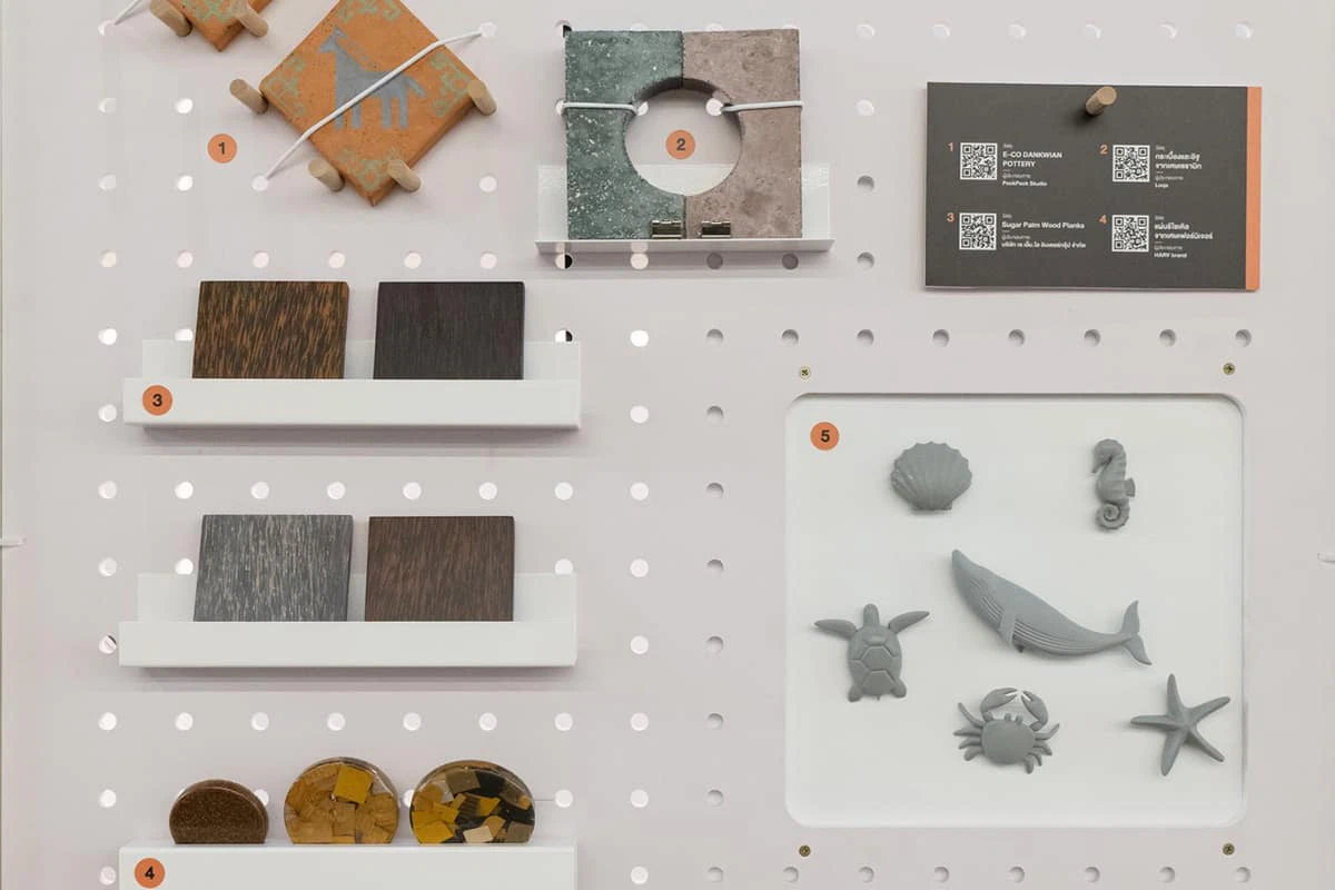 ภายในงานจะได้พบกับพาเหรดวัสดุจากผู้ประกอบการกว่า 50 บริษัท และชิ้นงานจัดแสดงกว่า 140 ชิ้น ให้ได้ลองสัมผัสจริง ผ่าน 4 ธีมหลัก คือ Eco & Smart ความเท่สุดสมาร์ตสีเข้ม Friendly & Chic วัสดุสีสันสวยงามสดใส Earth Tones วัสดุรักษ์โลกที่มาในเฉดสีเอิร์ธโทน และ Green & Glam วัสดุอีโคแห่งความหรูหรา เรียกว่าได้เดินชมกันแบบเพลิน ๆ ทั้งยังอาจได้รับแรงบันดาลใจใหม่ ๆ โดยเฉพาะในแง่ของความยั่งยืนที่เปิดกว้างกลับบ้านด้วยนะ