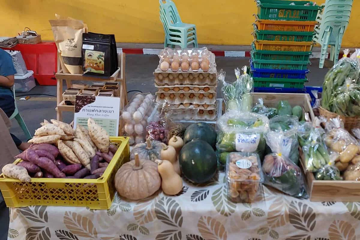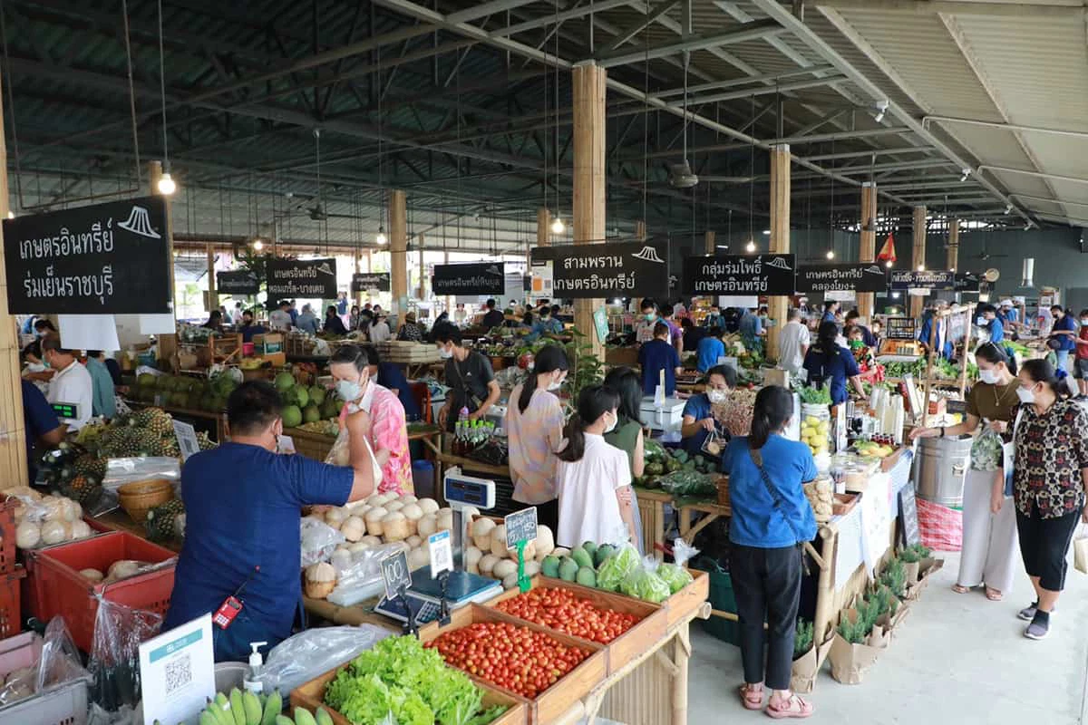 แถมยังได้เดินช้อปในตลาดได้แบบสุขใจสมชื่อ เพราะได้ทั้งของกินของใช้ที่ดีต่อกาย ดีต่อใจ และได้สัมผัสบรรยากาศแบบไทย ๆ ฟีลน่ารัก ๆ ที่บรรดาพ่อค้าแม่ค้าคอยต้อนรับอย่างมิตรไมตรี หรือถ้าจะถามถึงแหล่งที่มาของที่เราซื้อ พ่อค้าแม่ค้าก็ตอบได้หมด เพราะสินค้าต่าง ๆ เกษตรกรเป็นคนผลิตและจำหน่ายเองทั้งหมด เรียกว่าเป็นอีกตลาดของการพบปะระหว่างผู้บริโภคกับเกษตรกรตัวจริง