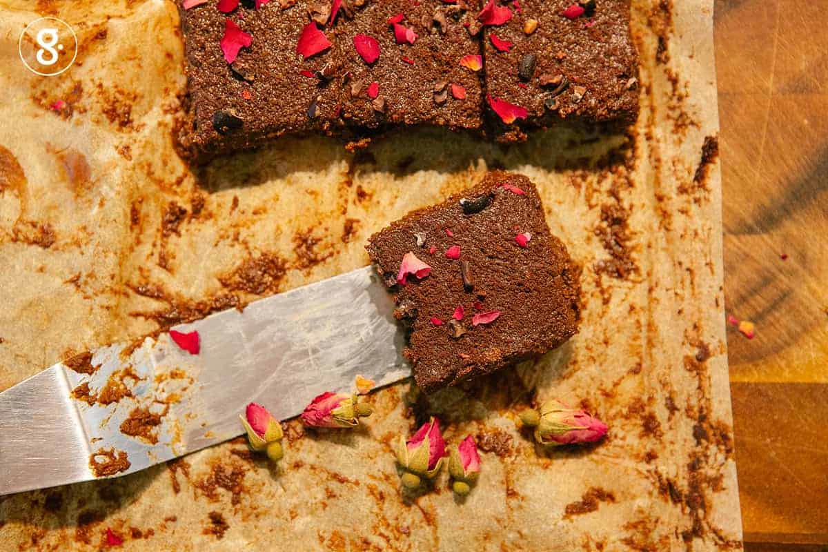 แม้จะชื่อเมนูว่าบราวนี่ แต่คุณลูกหยีชี้แจงว่า จริงๆ แล้วเมนูคล้ายช็อกโกแลตบาร์มากกว่า เพราะบราวนี่สูตรนี้ใช้ส่วนผสมหลักเป็นฟักทองกับธัญพืชต่างๆ ใช้กาเกา (Cacao) เป็นองค์ประกอบเสริมที่ยังทำให้เมนูนี้มีสีสันหน้าตาละม้ายบราวนี่อยู่ ส่วนความหวานของเมนูนี้ได้มาจากผลไม้และน้ำตาลธรรมชาติล้วนๆ