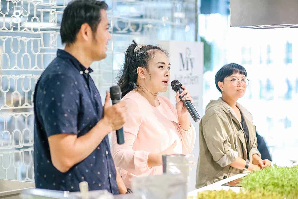 ผักบุ้งเป็นผักคู่ครัวไทยมาช้านาน ไม่ว่าจะผัดผักบุ้งไฟแดง ยำผักบุ้งกรอบ แกงส้มผักบุ้ง หรือแกงเทโพ ก็ล้วนเป็นเมนูอิ่มง่ายสบายท้องของหลายครอบครัว แต่น้อยคนนักจะรู้ว่าผักบุ้งสามารถกินเป็นต้นอ่อนได้ด้วย Greenery Workshop จึงได้เชิญคุณทิพ ณัฐปภัสร์ ยอดธรรม และคุณดิเรก ขำคง ตัวแทนจากกลุ่มวิสาหกิจชุมชนบ้านพระพร จังหวัดราชบุรี ที่สนับสนุนการทำเกษตรอินทรีย์และอาหารแปรรูปแบบไม่ใช้เคมี มาจูงมือเราเพาะต้นผักบุ้งอ่อนในแปลงเข่งปลาทูขนาดย่อม พร้อมสาธิตการนำไปปรุงอาหารเสร็จสรรพ ครบวงจรของการเข้าใจที่มาที่ไปของอาหาร จนกระทั่งถึงจานกับข้าวโดยแท้จริง