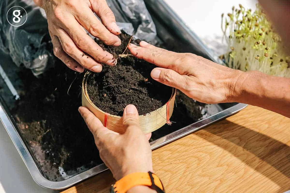 ตากแดดดินก่อนนำไปใช้เพื่อฆ่าเชื้อ และร่อนดินเพื่อกำจัดขุยต่างๆ ที่จะรบกวนการโตของเมล็ดออกไป