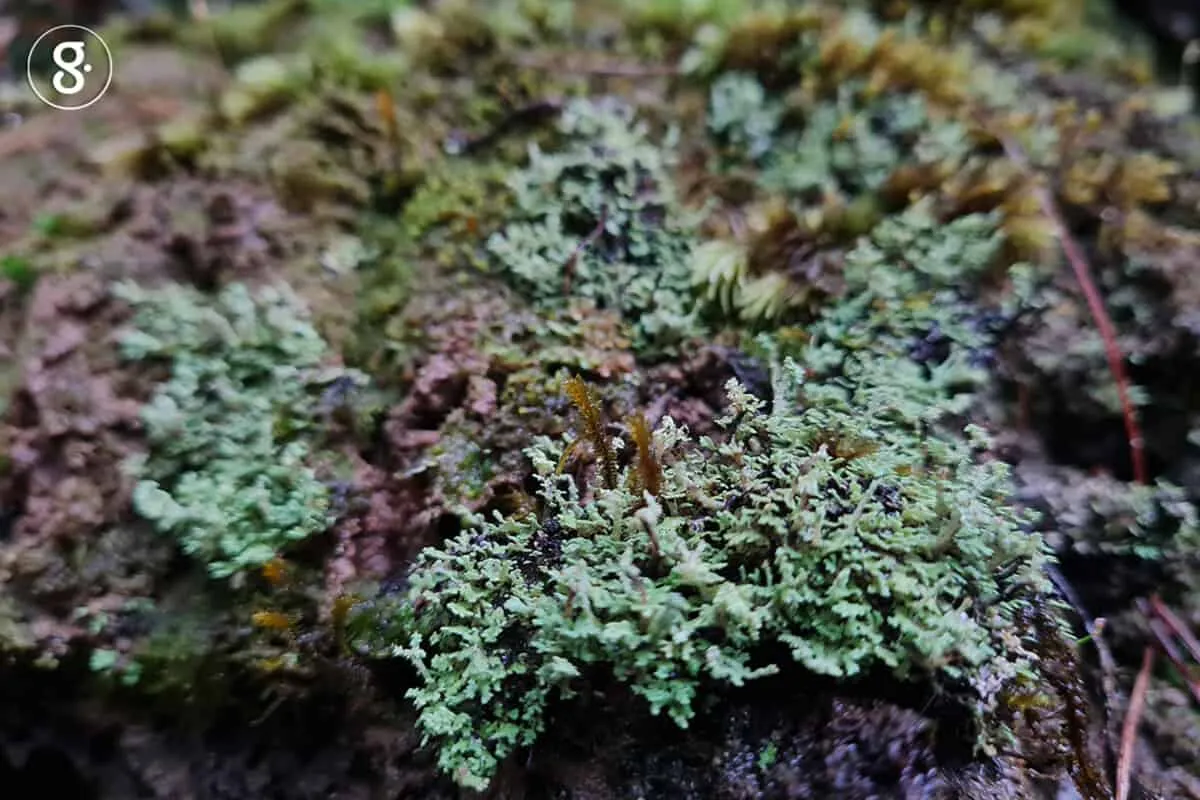 ผืนป่าชื้นฝนเผยให้เราเห็นความสมบูรณ์อีกหลากหลาย หนึ่งในหลายอย่างคือบรรดา “ไลเคน” สิ่งมีชีวิตที่เกิดจากการพึ่งพาอาศัยกัน (Mutualism) ระหว่างราและสาหร่าย มีรูปร่างลักษณะและสีสันหลากหลาย ซึ่งเป็นข้อสังเกตในการใช้วัดความสะอาดของอากาศและความอุดมสมบูรณ์ของป่าได้อย่างคร่าว ๆ ด้วยไลเคนนั้นเป็นสิ่งมีชีวิตที่ต้องอาศัยอยู่ในพื้นที่ที่อากาศสะอาดพอสมควร การพบปะไลเคนเรื่อยไประหว่างทางจึงเป็นทั้งความตื่นตาตื่นใจ และเป็นสิ่งที่ทำให้เรากลับมาตั้งคำถามถึงสภาพอากาศในเมืองใหญ่ สถานที่ที่ไลเคนพบเห็นยากขึ้นเรื่อย ๆ
