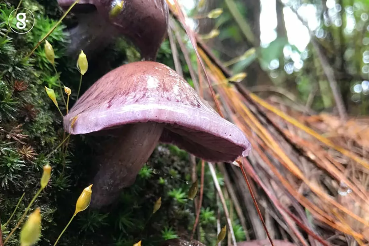 นอกจากไลเคน อีกหนึ่งสิ่งมีชีวิตที่น่าสนใจไม่แพ้กันคือ “เห็ด” หลากชนิดที่ผุดขึ้นให้เห็นในป่าดิบเขาแห่งนี้ แต่นอกจากดอกเห็ดที่เราคุ้นหน้าคุ้นตา ความสัมพันธ์ระหว่างเห็ดกับธรรมชาติในป่าก็เป็นอีกสิ่งที่เราสนใจ โดยเฉพาะเรื่องการพึ่งพาอาศัยระหว่างเห็ดราและต้นไม้ผ่านเครือข่ายใต้ดินที่เรียกว่า “Wood Wide Web” ซึ่งเห็ดราไมคอร์ไรซา (Mycorrhiza) ที่อาศัยอยู่กับรากไม้ จะทำหน้าที่เป็นสื่อกลางในการสื่อสารระหว่างพืชพรรณในป่า ผ่านการสร้างเส้นใยบางๆ ที่เรียกว่าไมซีเลียม (Mycelium) เป็นเครือข่ายเชื่อมโยงอยู่ใต้ดิน เรียกว่าต้นไม้นานาชนิดในป่านั้นสื่อสารกันผ่านเส้นใยดังกล่าว ทั้งเรื่องการระแวดระวังภัยธรรมชาติ การส่งสัญญาณเพื่อขอความช่วยเหลือหรือรับส่งสารอาหารบางชนิด ผ่านการทำงานอย่างสลับซับซ้อนของเห็ดราไมคอร์ไรซาที่อยู่ใต้ดิน ซึ่งเราสังเกตได้จากดอกเห็ดที่จะผุดขึ้นในป่า เป็นเครื่องยืนยันการมีอยู่ของโครงข่ายเห็ดราที่กำลังทำงานแข็งขันกันอยู่ใต้ดิน