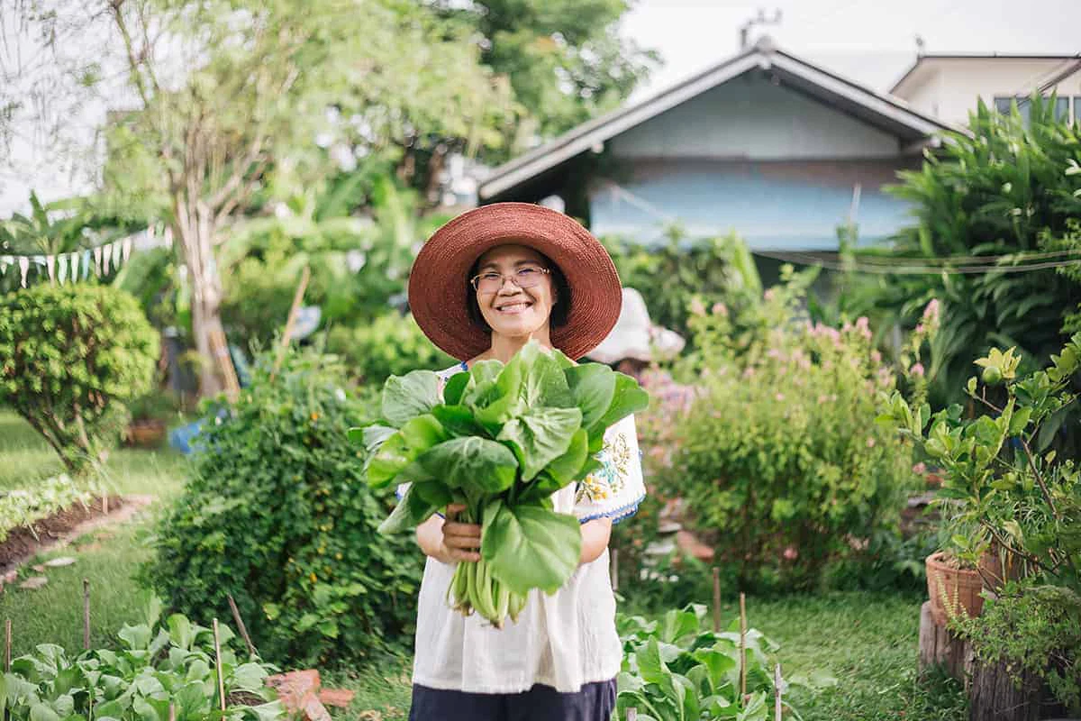 “ลองนับดู โอ้โห นี่เราปลูกผักมาร่วมสามปีแล้วนะ” แม่บ้านตัวเล็กๆ สวมหมวกปีกกว้างพูดเสียงใส ระหว่างเดินนำเราไปยังแปลงผักสวนครัวของเธอที่ภูมิใจนักหนา
