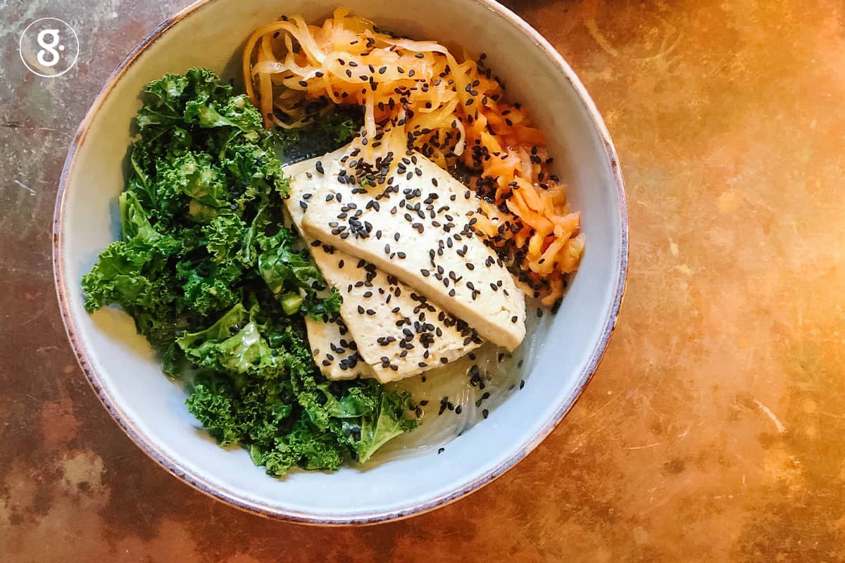 เมนูแทบทุกจานของ Happy M Kitchen จึงออกแบบเพียงแค่จานพื้นฐาน เพื่อให้ลูกค้าเติมทอปปิ้งได้ตามชอบ ซึ่งไม่ว่าจะยังเป็นสายกินรวบทั้งเนื้อและผักอย่าง omnivore เหล่ามังสวิรัติ หรือสายวีแกนก็ปรับวัตถุดิบในแต่ละจานให้เข้ากับนิสัยการกินของตัวเองได้ เช่น หากสั่งก๋วยเตี๋ยวมิโสะ ก็เลือกได้ว่าจะเติมทอปปิ้งเป็นเต้าหู้ย่าง เทมเป้ แซลมอนย่าง หรือกุ้ง