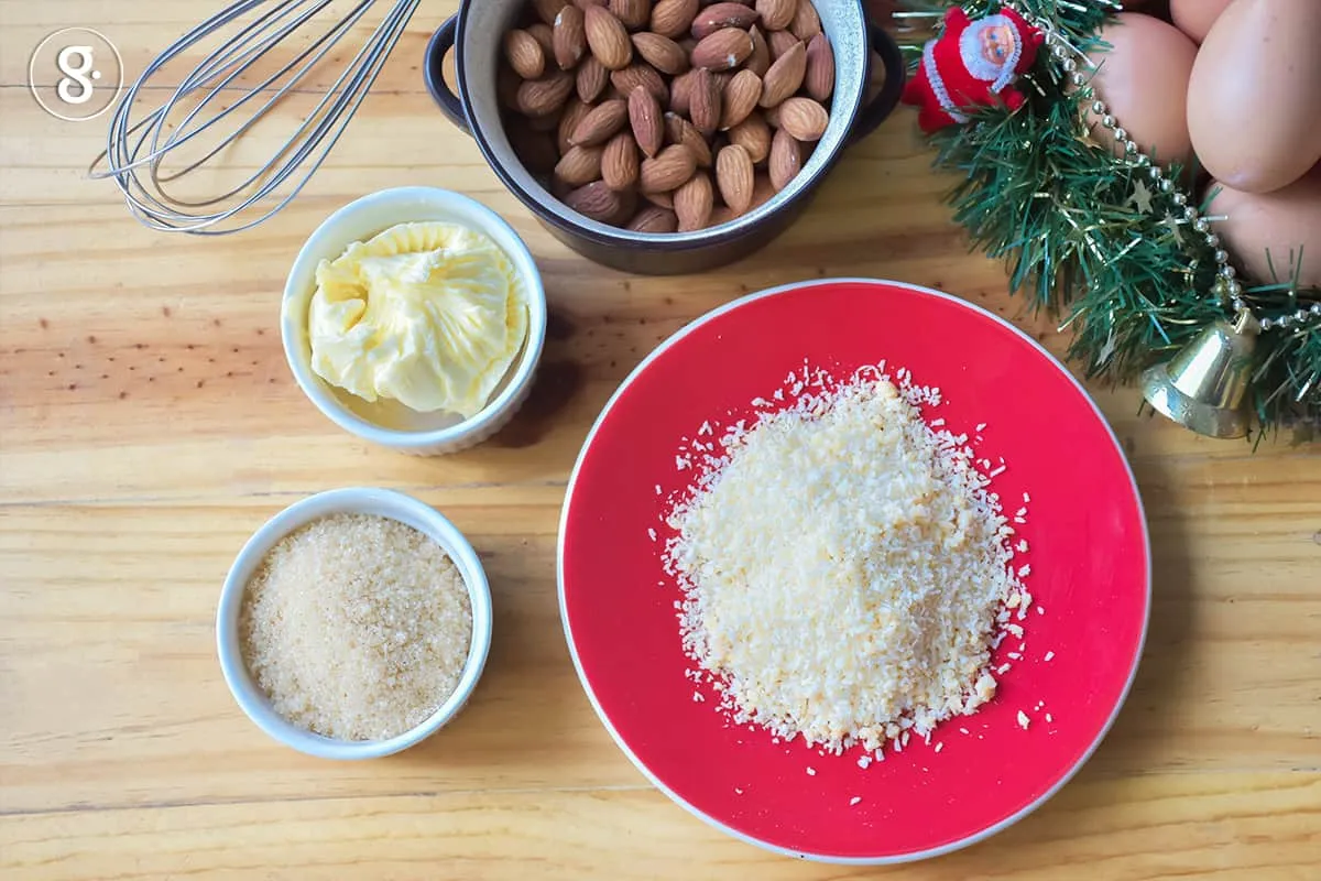 - เมล็ดอัลมอนด์ (อบไฟอ่อนพอสุก) สำหรับตกแต่งหน้าคุกกี้