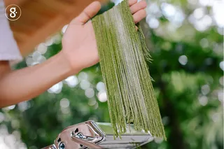 ได้เส้นมาแล้วก็จัดการนำไปลวกเหมือนกันเส้นบะหมี่ทั่วไป ซึ่งเราสามารถนำไปปรุงเป็นเมนูอะไรก็ได้ตามความต้องการ อย่างเช่น ทำเป็นเส้นก๋วยเตี๋ยว เส้นพาสต้า หรืออย่างวันนี้เราจะแปลงโฉมเป็นบะหมี่เส้นผักหวานผัดกับเห็ดออรินจิคู่กับเห็ดแครงซึ่งเป็นเห็ดพื้นบ้านหาได้ง่าย เติมพืชผักริมรั้วเข้าเป็นสีสันสักหน่อยก็ดูดีน่ารับประทานไม่น้อย โรยเส้นมะละกอห่ามๆ เสียหน่อย เสิร์ฟคู่กับต้นหอมและผักวอเตอร์เครสสีแดง กลายเป็นเมนูที่กินแล้วฟินๆ ทั้งยังทำไม่ยาก เหมาะกับทุกเพศทุกวัย โดยเฉพาะเหล่าเด็กๆ ที่ไม่ค่อยปลื้มกับบรรดาผักเขียวๆ สักเท่าไหร่ เมื่อพร้อมแล้วก็หยิบตะกร้า ไปเก็บผักที่เราชื่นชอบกันได้เลย