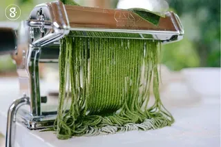 pung craft บ้านเรียนขนมปัง จึงจับเอาผักเขียวๆ โดยเลือกเอาผักหวานบ้าน ซึ่งยืนต้นเขียวๆ อย่างแน่นหนาอยู่ริมรั้ว มาแปลงโฉมให้กลายเป็นเส้นบะหมี่ โดยความพิเศษของวันนี้คือ เลือกหยิบเอาแป้งข้าวสาลีพันธุ์สะเมิง ซึ่งเป็นข้าวสาลีที่ได้รับการพัฒนาสายพันธุ์จนสามารถปลูกได้ในประเทศไทย ความพิเศษคูณสองก็คือ เป็นแป้งข้าวสาลีไม่ขัดขาวหรือเรียกว่าแป้งโฮลวีต ซึ่งเพาะปลูกโดยใช้ระบบเกษตรกรรมแบบยั่งยืน ปลอดสารเคมี เป็นมิตรต่อโลกของเรา เรียกได้ว่าเป็นข้าวที่ดีต่อเราและสิ่งแวดล้อมอีกด้วย