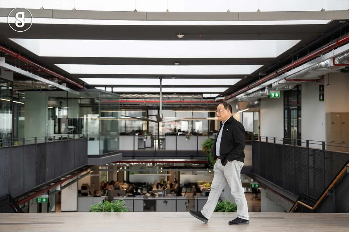 “เราเอากำแพงออกหมดเลย สามสี่ชั้นนี่ทุกคนมองเห็นกันหมด เรียกว่า collaborative หาตัวกันง่าย มองไปเห็นกรรมการ ผู้จัดการ ผู้บริหาร นั่งอยู่ก็ไปล็อกคอคุยได้ ทำให้งานไปเร็วขึ้น เพราะเราไม่มีอาณาจักรย่อย ทุกคนอยู่ใกล้กันหมด ความปรองดอง ความเกื้อกูลต่าง ๆ ดีขึ้น เป็นบรรยากาศที่มาจากสิ่งแวดล้อม สิ่งแวดล้อมกำหนดบุคลิก ตอนแรกผมก็ไม่ค่อยเชื่อเรื่องนี้ แต่พอมาอยู่ตึกนี้ผมเชื่อแล้วว่ามันมีจริง และคิดว่าเรามาถูกทาง”