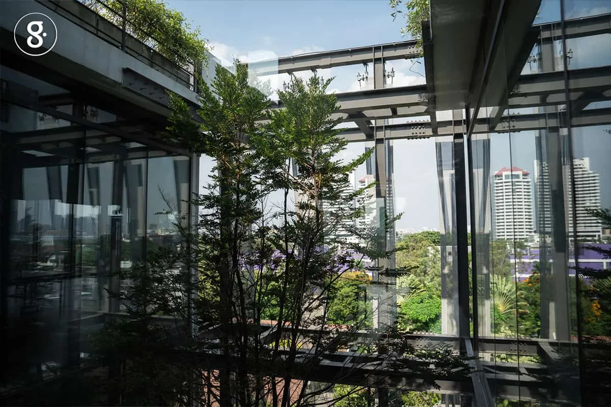แนวคิดแบบ Biophilic Design ซึ่งเป็นการดึงเรื่องธรรมชาติเข้ามาใช้ แปรออกมาเป็นคอนเซ็ปต์ในการออกแบบอาคาร โดย Bioarchitek ผู้ออกแบบอาคารหลังนี้