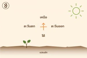 หากนักปลูกต้องการทำแปลงปลูกผัก ควรทำแปลงในทิศแนวเหนือใต้ หรือที่เรียกว่า ทำแปลงขวางตะวัน เพื่อแปลงผักของเราจะได้รับแสงแดดตลอดทั้งวัน