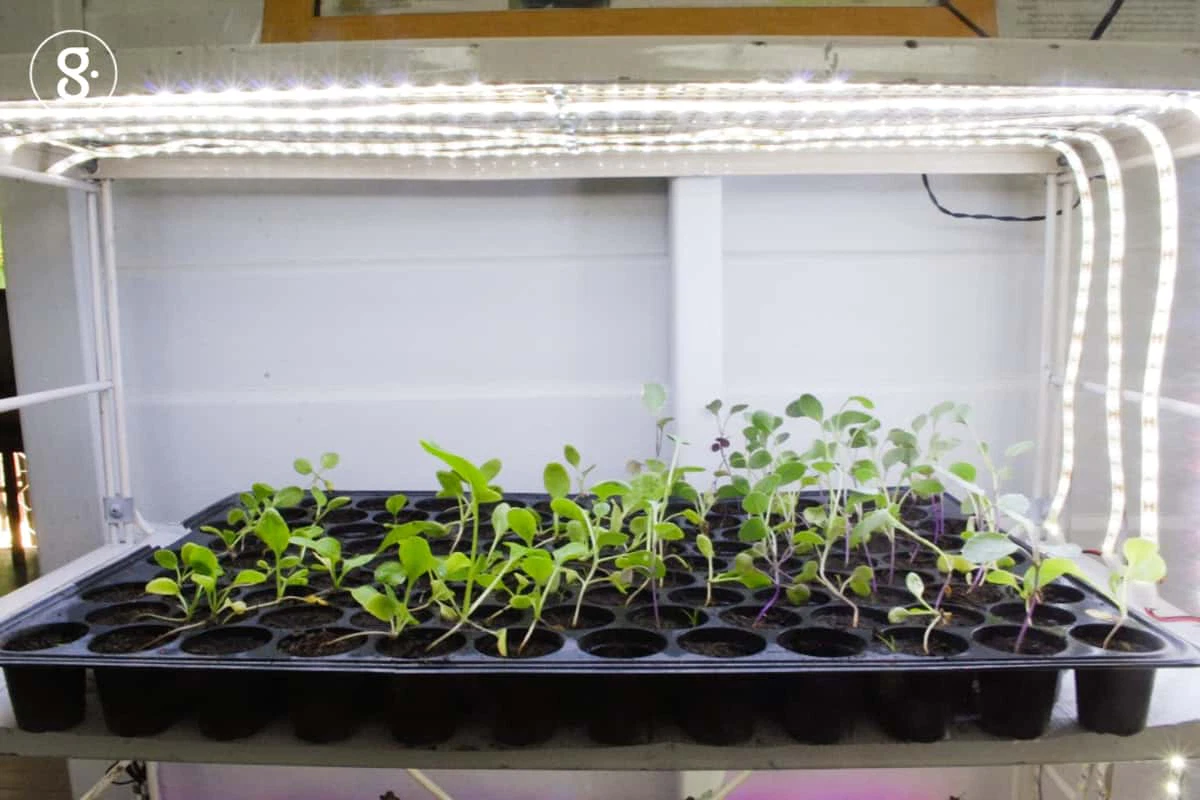 อ่านมาถึงตรงนี้แล้ว ใครยังรู้สึกว่าแสงแดดยังคงเป็นปัญหาสำหรับการปลูกผักอยู่แล้วละก็ ลองมาปลูกผักโดยใช้แสงจากหลอดไฟแอลอีดีทดแทนแสงอาทิตย์ดู โดยวางกระถางผักห่างจากหลอดไฟประมาณ 10-20 เซนติเมตร เปิดหลอดไฟตามระยะเวลาที่ผักต้องการเท่านั้น ไม่จำเป็นต้องเปิดหลอดไฟไว้ทั้งวันทั้งคืน จากประสบการณ์ที่ทดลองปลูกผักจากหลอดแอลอีดีแสงสีขาวนั้น ผักสามารถเจริญเติบโตได้แต่อาจจะได้ไม่ดีเท่ากับแสงธรรมชาติ แต่วิธีนี้ก็เหมาะสำหรับการปลูกไมโครกรีน (ผักจิ๋ว) และการเพาะต้นอ่อน ที่สำคัญยังช่วยแก้ปัญหาแสงแดดไม่พอในช่วงหน้าฝนได้อย่างดีเลยทีเดียว
