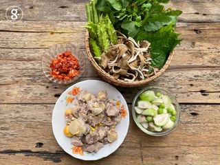 1. ไก่บ้านสับเป็นชิ้น (หรือเปลี่ยนเป็นเนื้อสัตว์ปลอดภัยชนิดอื่นได้ตามชอบ)