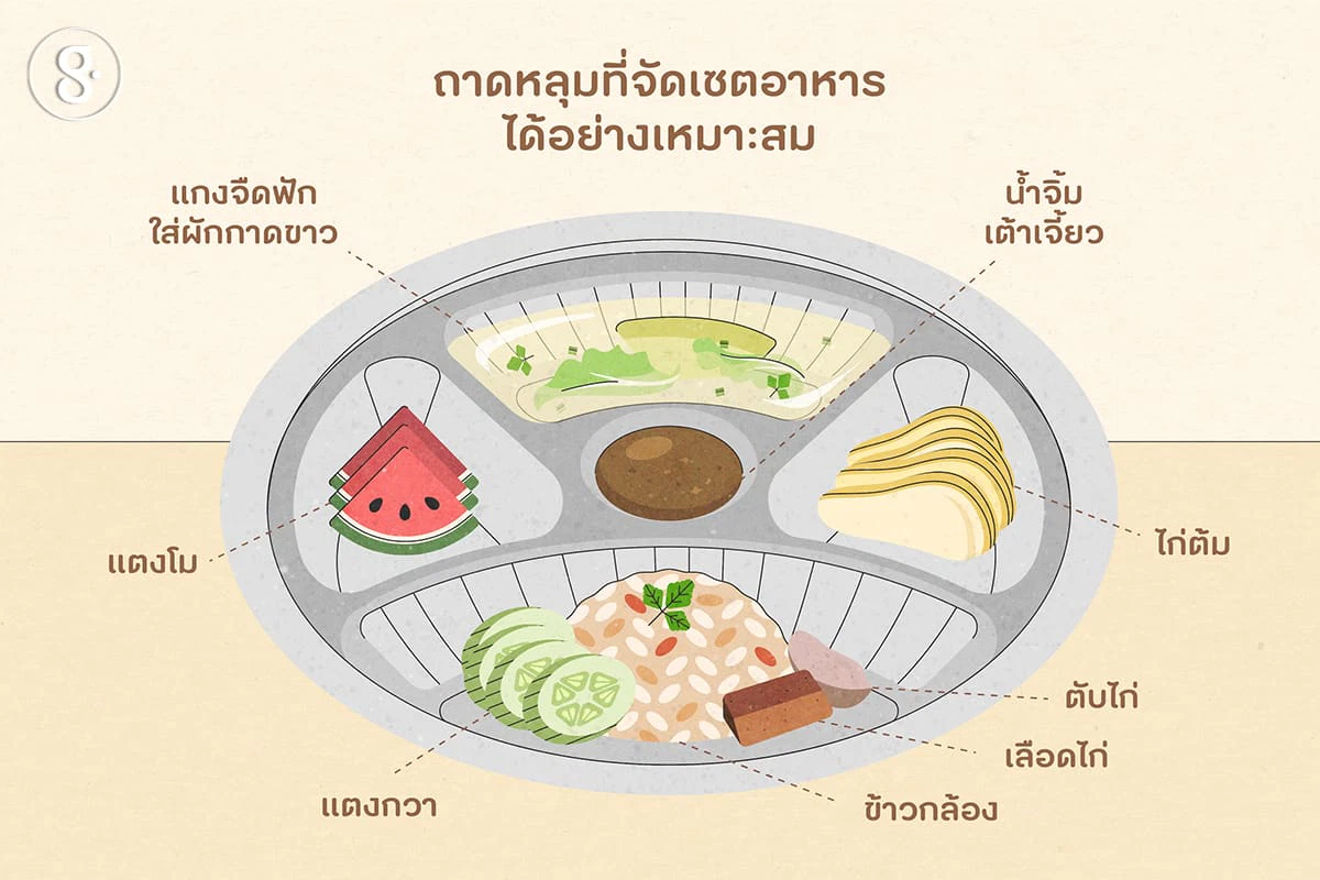 นอกจากจะเพียงพอให้อิ่มแล้ว ต้องไม่ลืมว่าต้องเพียงพอกับความต้องกายด้วย ในหนึ่งมื้อต้องมีข้าวประมาณ 2 ทัพพีครึ่ง ผักสัก 1 ทัพพี เนื้อสัตว์ 2 ช้อนกินข้าว หรือเทียบเป็นไข่ได้ 1 ฟอง ผลไม้สักหนึ่งจานเล็ก และเสริมด้วยนมจืดอีกสัก 1 กล่อง