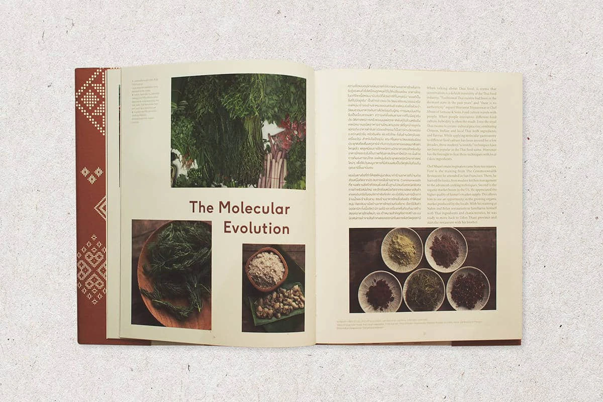 ในเล่มนี้ได้เลือกนำเสนอความสร้างสรรค์หลากหลาย ไม่ว่าจะเป็น วิธีคิดของกลุ่มวิสาหกิจชุมชนข้าวหอมดอกฮัง แห่งบ้านโคกสะอาด จังหวัดสกลนคร ในฐานะนาข้าวอินทรีย์ที่ไม่พึ่งสารเคมี แต่นำเทคโนโลยีมาช่วยให้การทำบรรจุภัณฑ์สะดวกและสะอาดได้มาตรฐาน เชฟเจ้าของร้านซาหมวย แอนด์ ซันส์ อุดรธานี ที่นำวิธีปรุงอาหารด้วยเทคนิคโมเลกูลาร์ล้ำสมัย มาปรุงอาหารอีสานแซ่บเด้อจากวัตถุดิบพื้นถิ่นดีต่อสุขภาพ บริษัท เชียงใหม่ ไลฟ์ คอนสตรัคชั่น ที่นำภูมิปัญญาเรื่องไม้ไผ่ มาออกแบบโครงสร้างอาคารที่เก๋ไก๋ แต่ใช้วัสดุธรรมชาติที่ทดแทนได้ง่ายอย่างไผ่โตเร็ว ปาเท็กซ์ โรงงานผลิตยางพาราธรรมชาติจากจังหวัดปัตตานี ที่เปลี่ยนยางราคาต่ำให้กลายเป็นหมอนยางพาราจากธรรมชาติ 100% ที่ป้องกันเชื้อโรคขนาดเล็กและฝุ่นได้เป็นอย่างดีเหมาะกับผู้เป็นโรคหอบหืด กลายเป็นสินค้าส่งออกที่ไปได้ดีในตลาดจีนและญี่ปุ่นในปัจจุบัน และ การพยายามผลักดันให้พืชเศรษฐกิจอย่างข้าว มีมูลสค่าเพิ่มทางเศรษฐกิจของแบรนด์ TIMS แปรรูปน้ำมันรำข้าวพรีเมียมด้วยเทคโนโลยีที่ทันสมัย