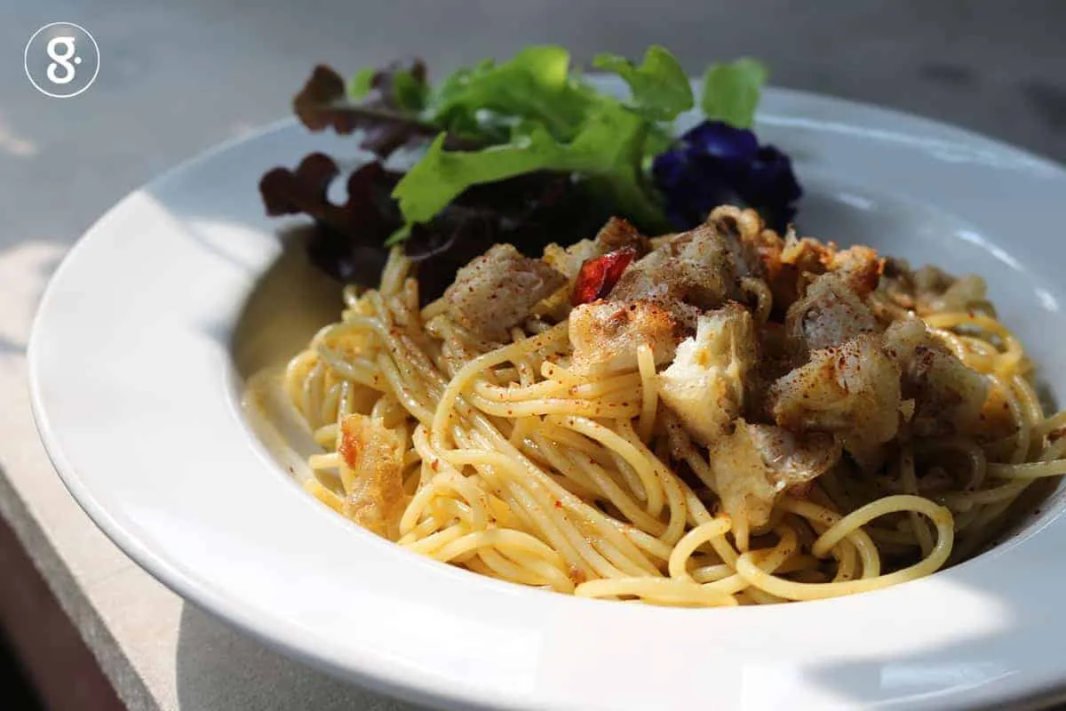 คนเหนือใช้น้ำปูมาปรุงรสอาหารได้หลายอย่าง อาทิ ยำหน่อไม้ใส่น้ำปู ตำส้มโอน้ำปู ร้านอาหารแม่ทาออร์แกนิคส์ ที่เป็นร้านอาหารของชุมชนก็ใช้น้ำปูเป็นเมนูชูโรงของร้าน คือ ข้าวยำบ้านทา ใช้น้ำปูคลุกข้าวเสิร์ฟพร้อมหมูหวาน ไข่ฝอยพร้อมสารพันสมุนไพร ได้ความอร่อยครบครันสารอาหาร นอกจากนี้ แม่พิมพ์ทองยังได้ตำน้ำพริกรสเด็ดตำรับชาวเหนืออย่าง น้ำพริกอิเก๋ ให้เราได้ชิมกันด้วย น้ำพริกอิเก๋ปรุงได้หลากหลายสูตรแล้วแต่ตำรับของแต่ละบ้าน แต่สูตรของแม่พิมพ์ทองใช้พริกหนุ่ม กระเทียม ตะไคร้ ตำให้เข้ากัน ใส่น้ำปูลงไป คลุกเคล้าแล้วปรุงรสด้วยมะนาว โรยหน้าด้วยพริกแดงซอย กินเคียงผักสดจานโต เป็นเมนูแสนง่ายที่ได้ช่วยชูรสมื้ออาหารได้อย่างเยี่ยมยอด