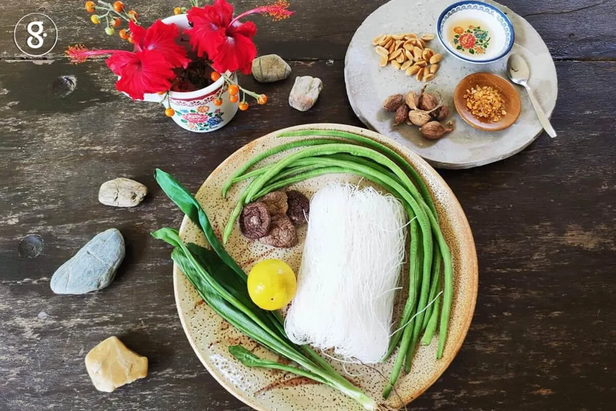 อีกอย่างที่เราปรับคือเลือกใช้วุ้นเส้นแทนเส้นเล็ก เพราะเบาท้องมากกว่าในวันที่ไม่ต้องการคาร์โบไฮเดรต เป็นเมนูก๋วยเตี๋ยวสุโขทัยแบบ plant based ที่ปลอดเนื้อและเฮลตี้ในเวลาเดียวกัน