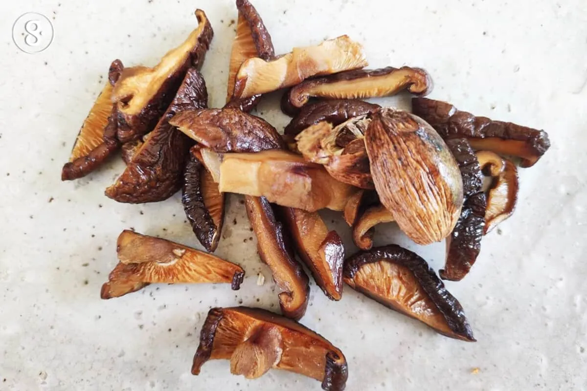 3. แช่เห็ดหอมแห้งให้นิ่ม จากนั้นนำมาหั่นเป็นเส้น